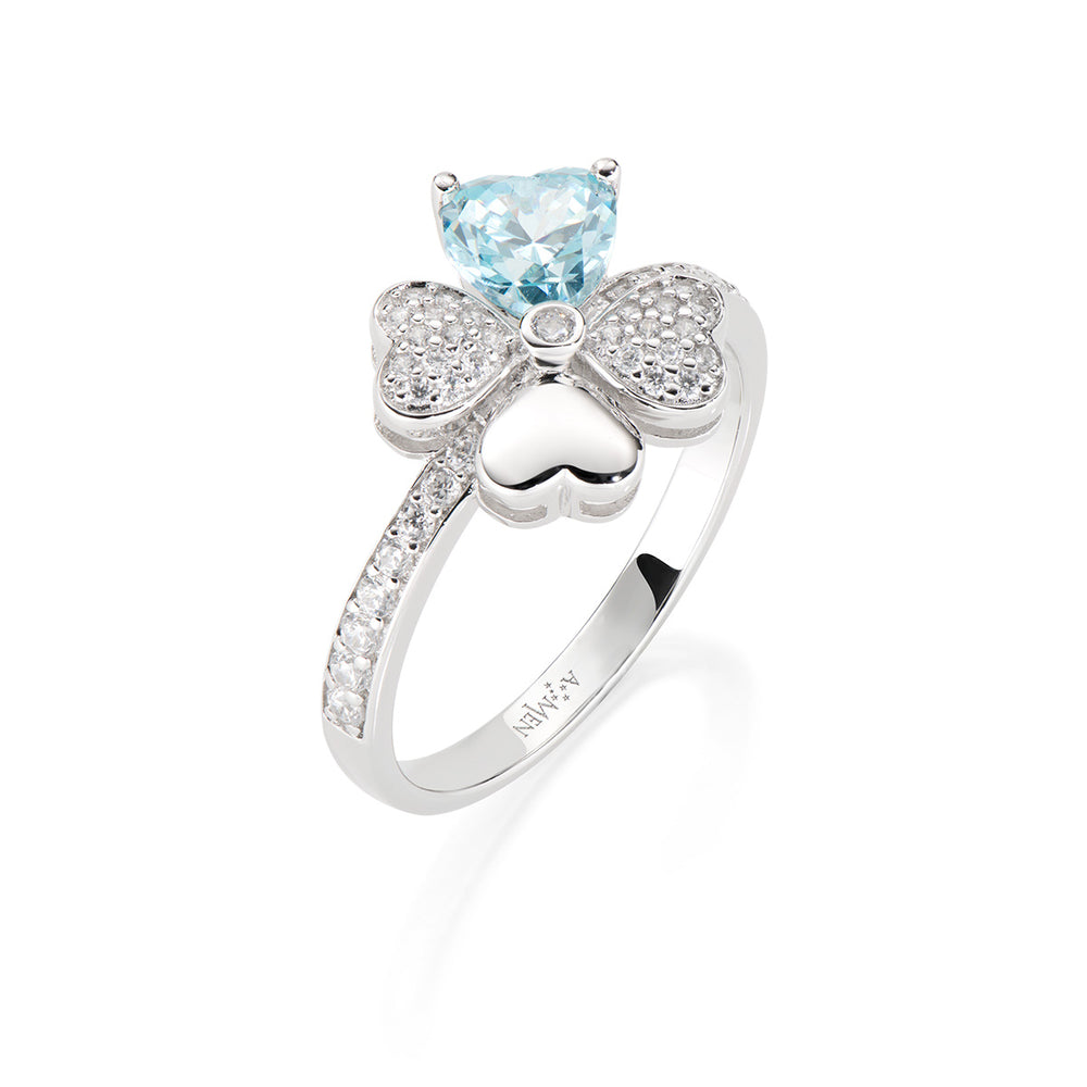 Anello in argento 925 con zircone acquamarina e zirconi bianchi - Rodio - Mis. pari dalla 10 alla 20. Collezione: Amen Gioielli QUADRICUORE. Codice prodotto: RQUBAC-10. Tipologia: Anello da Donna. Descrizione: Anello in Argento 925. Taglia: 10. Finitura: Rodio. Peso: 4,2g. Confezione: confezione originale Amen. Garanzia: garanzia internazionale Amen 24 mesi.