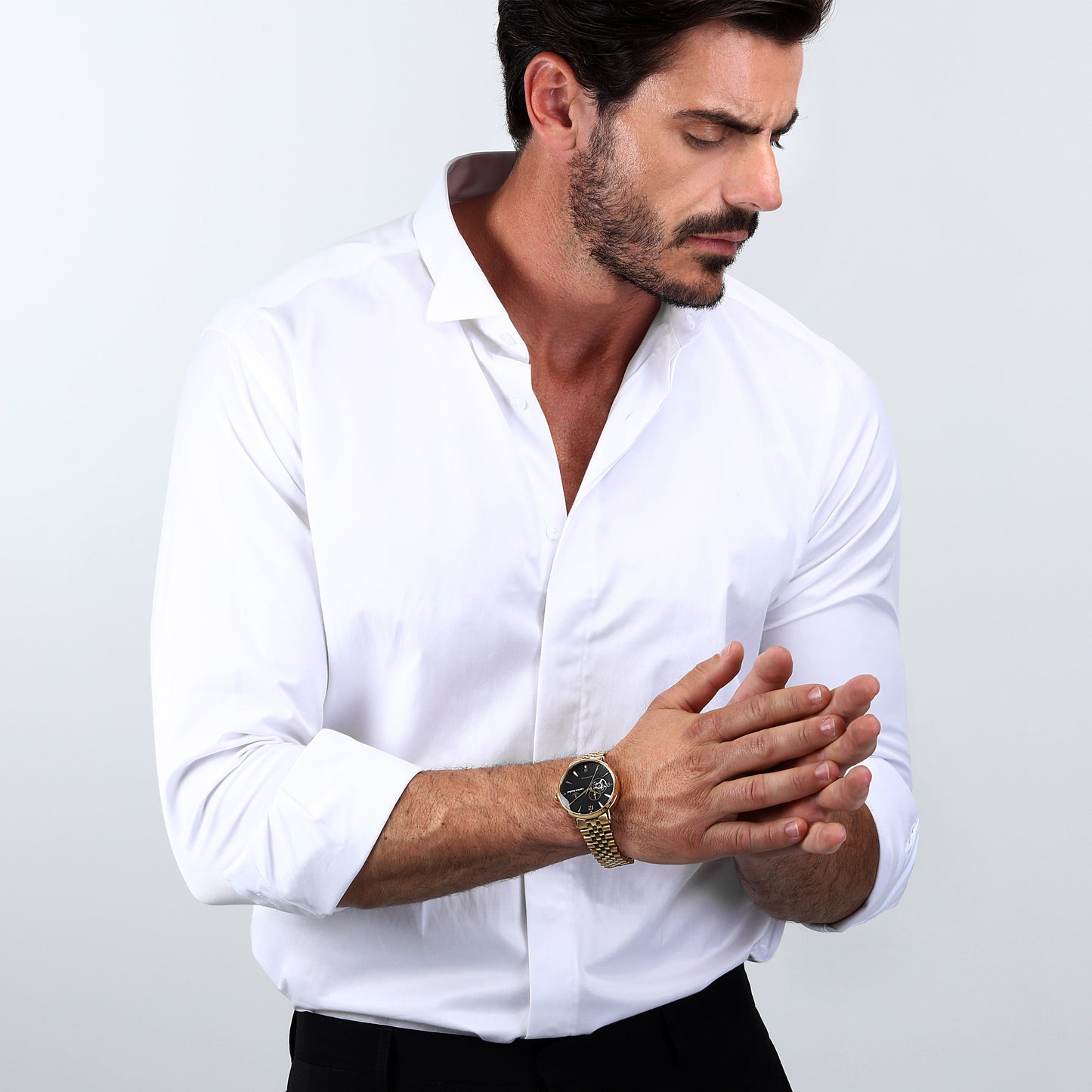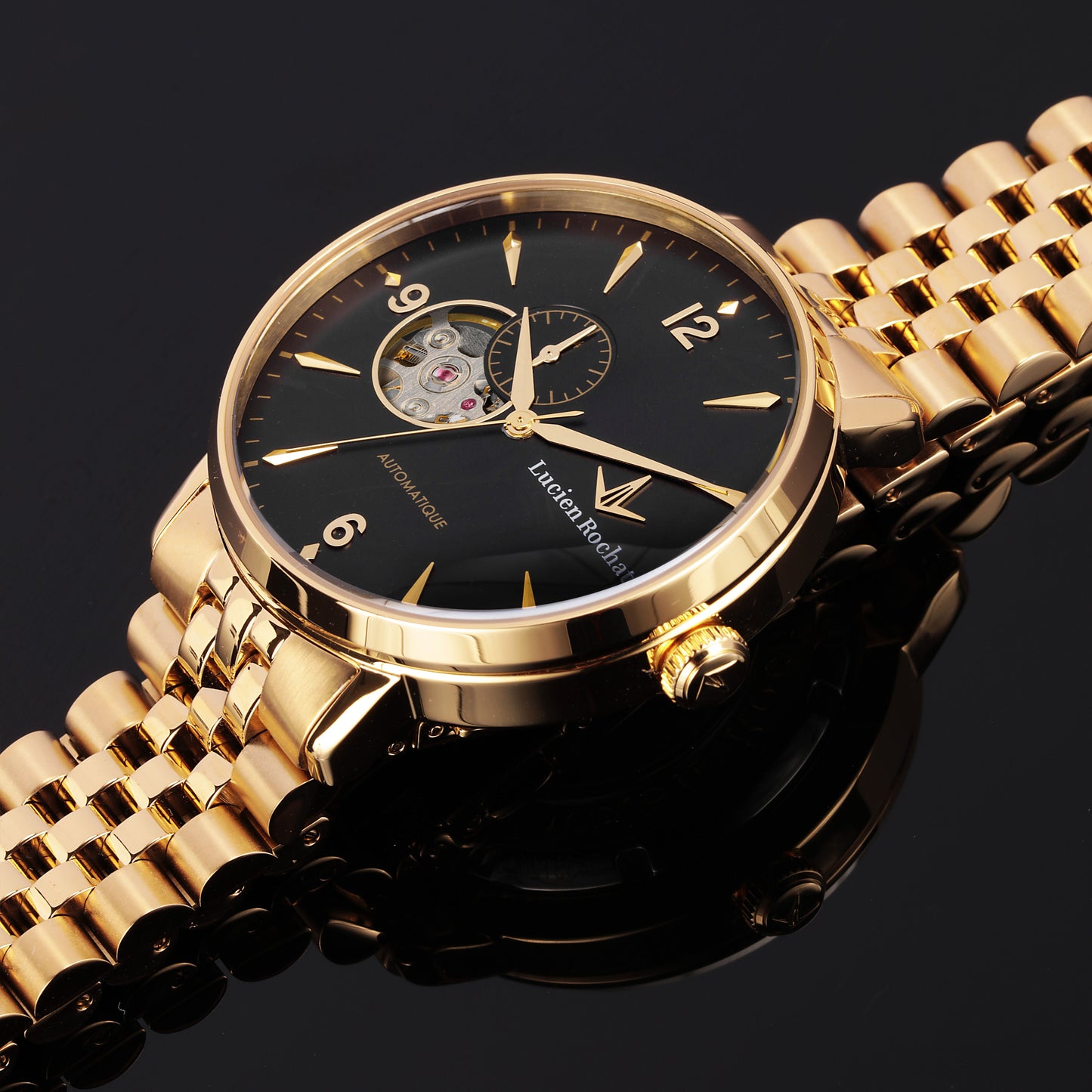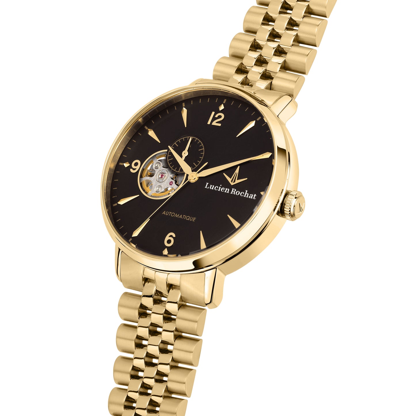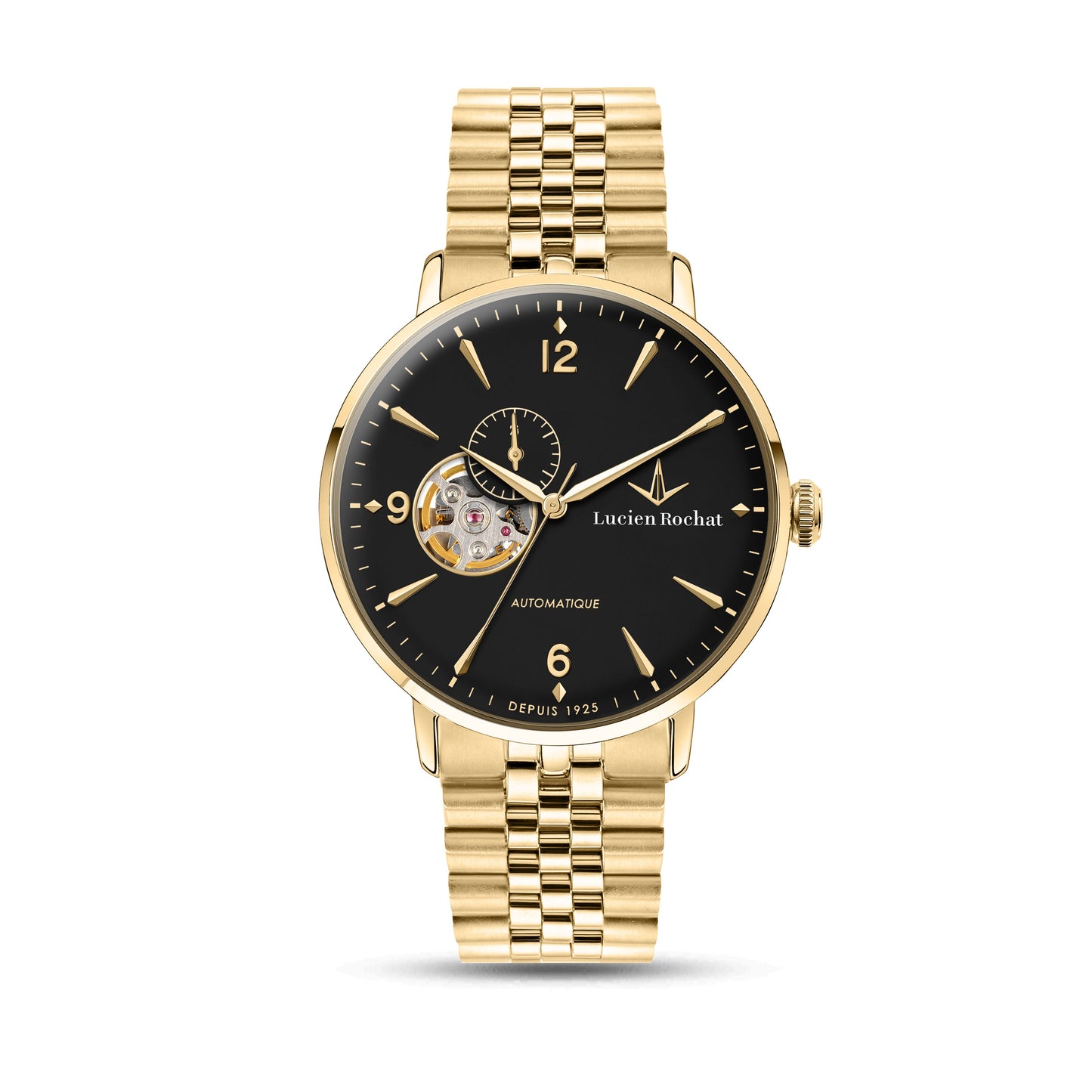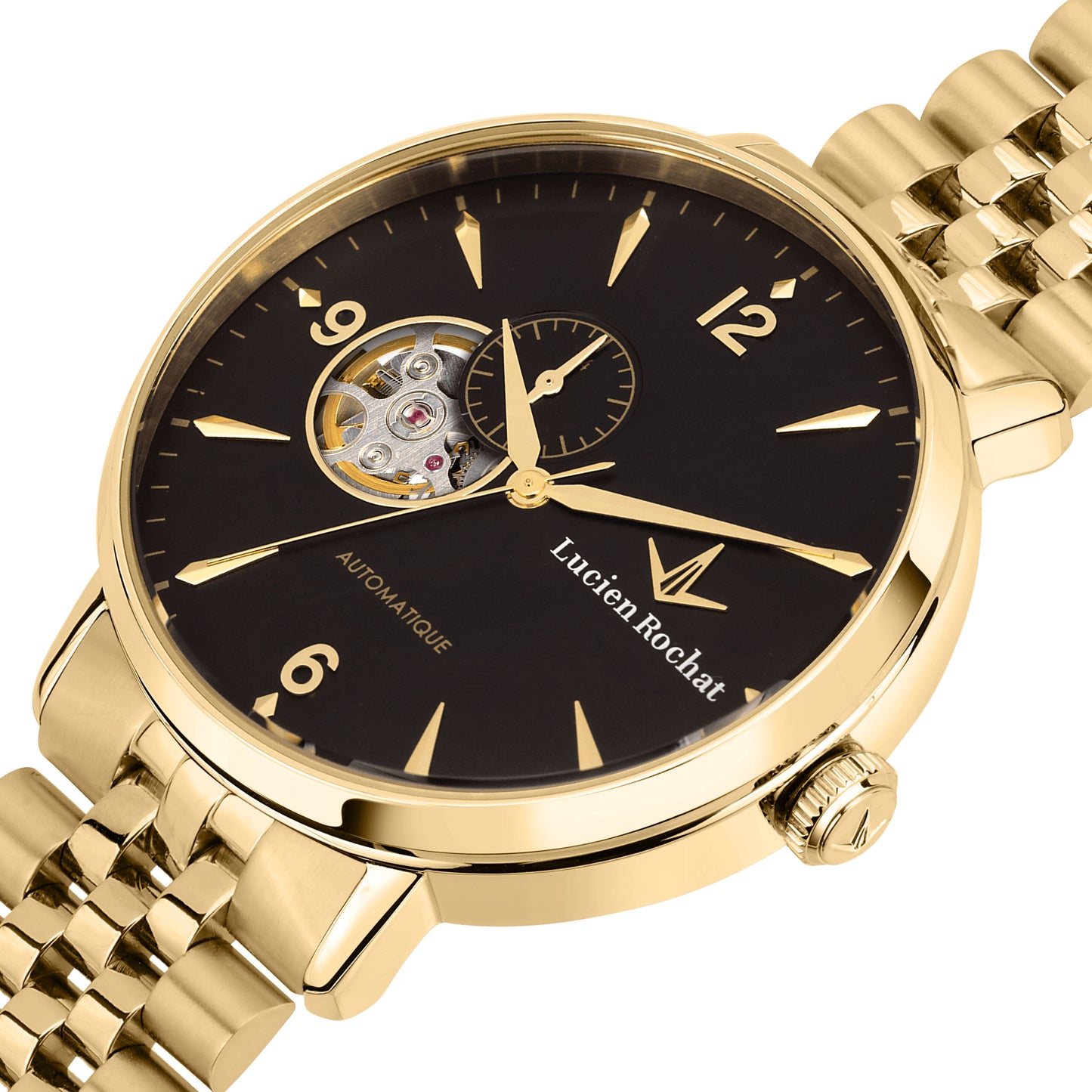Orologio Uomo LUCIEN ROCHAT della collezione GARÇON. Orologio con movimento MVT. NH39, funzione Automatico. Quadrante: 4 lancette index, finitura Acciaio. lucido, colore NERO. Tipo cinturino: Solid. Materiale cinturino: Bracciale in Metallo di colore Oro. Cassa in Vetro zaffiro. trattamento antiriflesso di dimensioni 41. Chiusura: Fibbia DEPLOYANTE con pulsanti. Resistenza all'acqua: 3 ATM. Peso: 137,4 gr. Codice prodotto: R0453120001. Materiali: Acciaio. PVD Oro. Confezione: scatola originale LUCIEN ROCHAT. Garanzia: garanzia internazionale LUCIEN ROCHAT