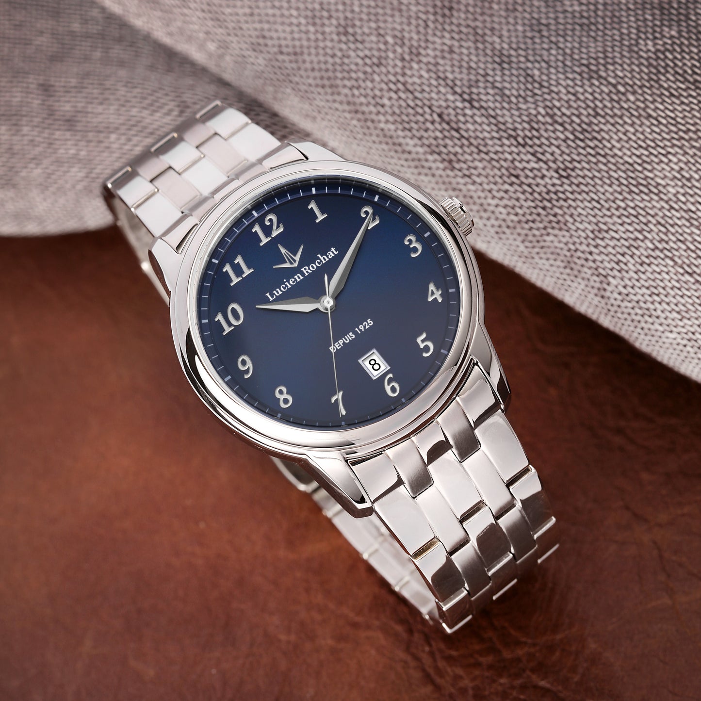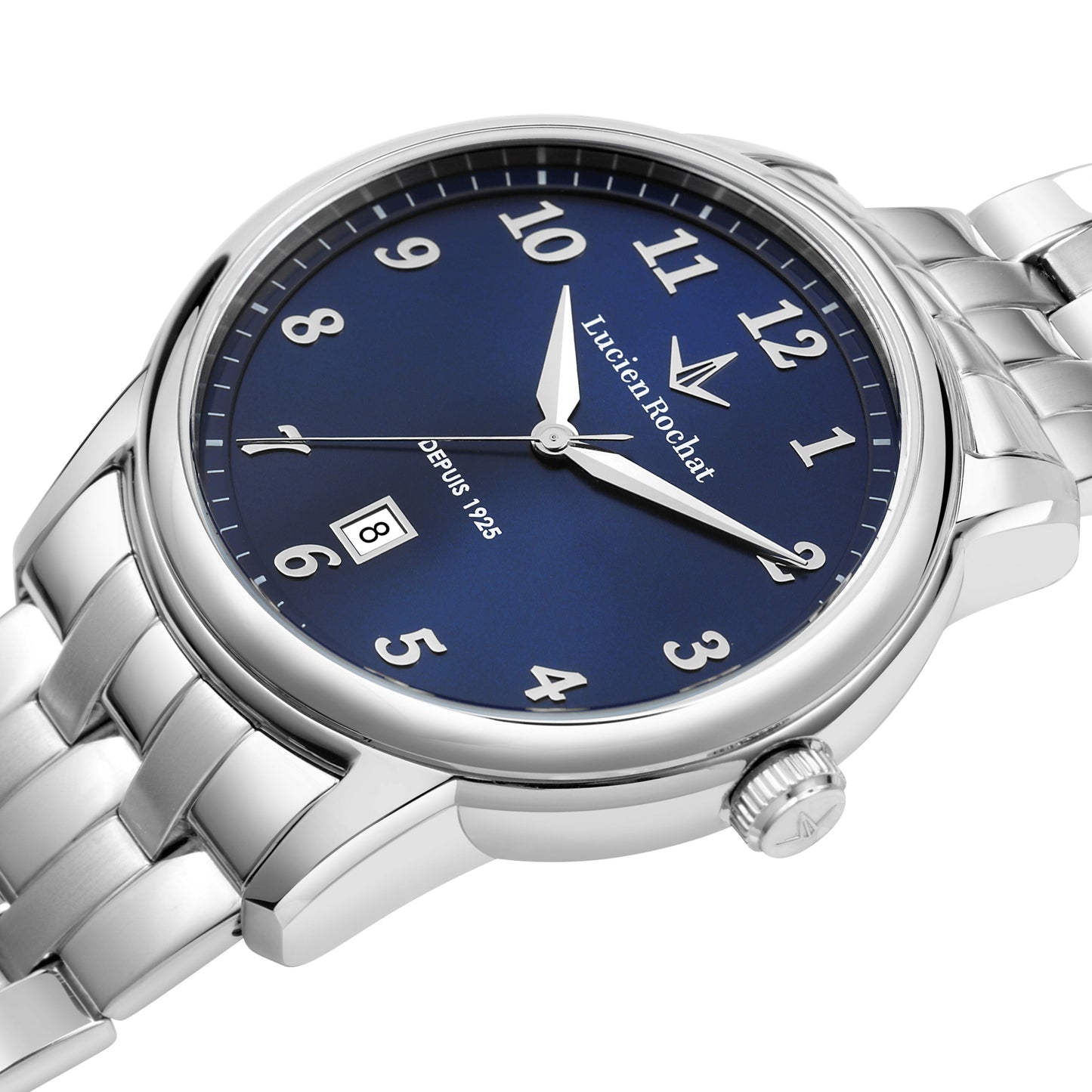 Orologio Uomo LUCIEN ROCHAT della collezione ICONIC. Orologio con movimento MVT. MIYOTA 2315, funzione tempo e data. Quadrante: 3 lancette num arabi+indici c/datario a ore 6, finitura Acciaio. lucido, colore BLU. SUNRAY. Tipo cinturino: Solid. Materiale cinturino: Bracciale in Metallo di colore Acciaio. Cassa in Vetro minerale, trattamento zaffiro di dimensioni 42. Chiusura: Fibbia FARFALLA con pulsanti. Resistenza all'acqua: 3 ATM. Peso: 155 gr. Codice prodotto: R0453116002. Colore: ARGENTO. Materiali: Acciaio. Confezione: scatola originale LUCIEN ROCHAT. Garanzia: garanzia internazionale LUCIEN ROCHAT