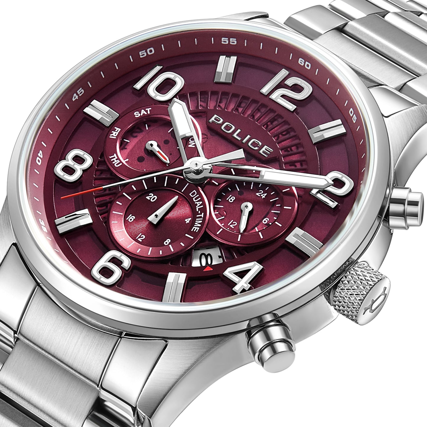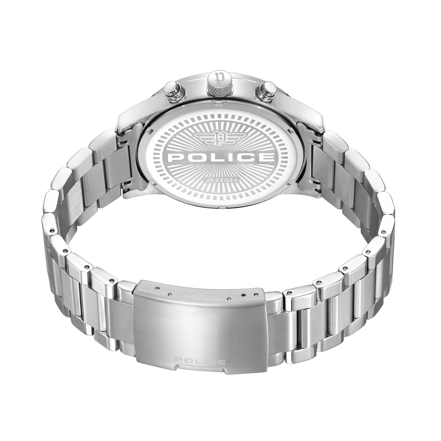 Orologio Uomo Police Addis PEWJK2203103. L’eleganza classica dell'orologio multifunzione ADDIS di POLICE lo rende il complemento perfetto per un look raffinato e accurato. È caratterizzato da una cassa da 45 mm in acciaio argentato lucido e spazzolato che racchiude un prezioso quadrante nero; il suo design audace attira immediatamente lo sguardo. Un massiccio cinturino d'acciaio argentato con fibbia a pressione completa sapientemente il design dell'orologio.