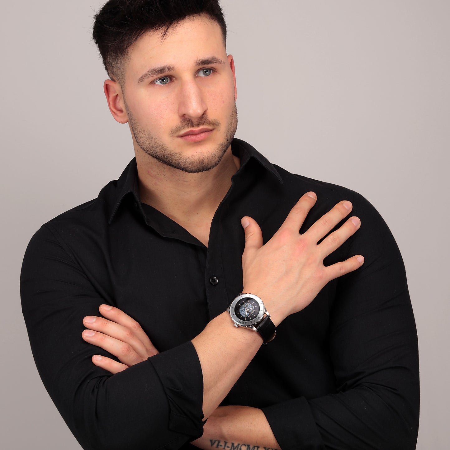 Orologio Uomo TRUSSARDI della collezione T-LOGO. Orologio con movimento MVT AUTO NH70, funzione Automatico. Quadrante: 3 lancette indici, finitura Lucido e satinato, colore NERO. Tipo cinturino: Semiribordato. Materiale cinturino: Bracciale in Pelle di colore Nero. Cassa in Vetro minerale, trattamento zaffiro di dimensioni 43. Chiusura: Fibbia ARDIGLIONE. Resistenza all'acqua: 5 ATM. Peso: 94,95 gr. Codice prodotto: R2421143002. Materiali: Acciaio. Pelle naturale. Confezione: scatola originale TRUSSARDI. Garanzia: garanzia internazionale TRUSSARDI