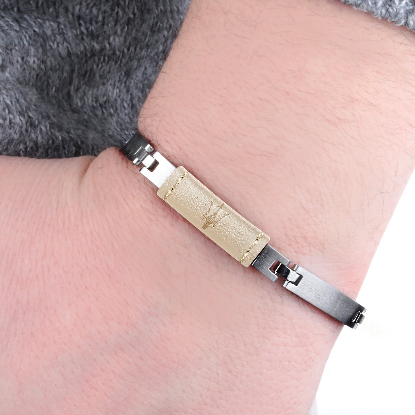 Bracciale UOMO MASERATI ICONIC JM218AMD03. Dimensioni: 22CM. Materiali: Acciaio. Cuoio. Tipo chiusura: Fibbia GIOIELLERIA. Peso: 28,04. Garanzia Prodotto: Garanzia Internazionale MASERATI. Confezione: Scatola originale MASERATI