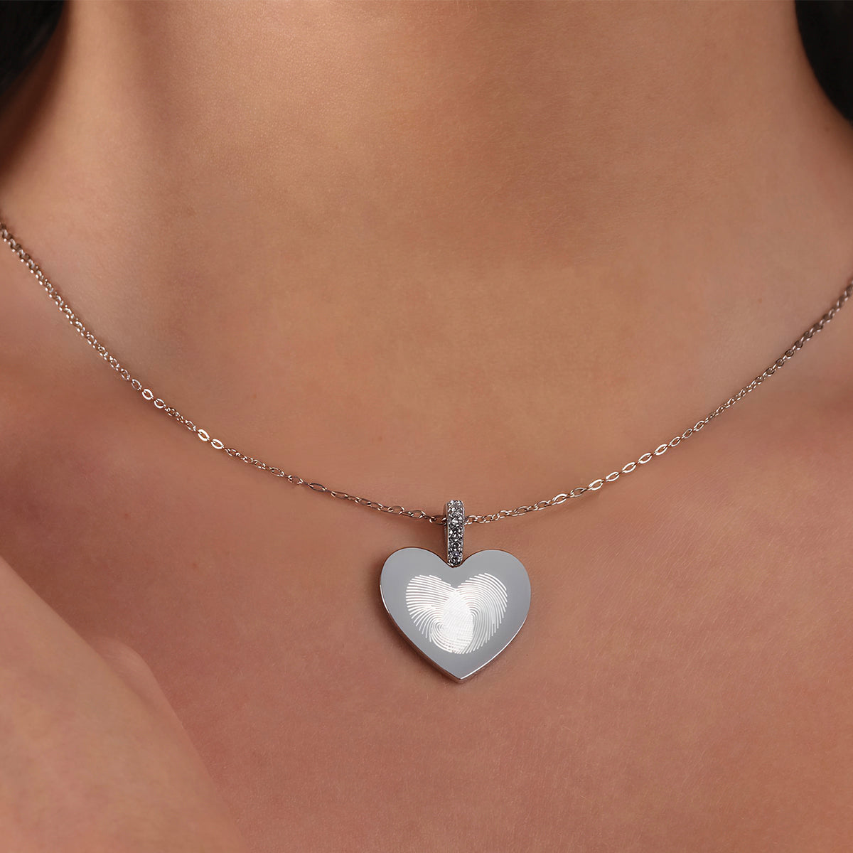 Amen Emotion EMACCLCUB3 Necklace in 316L Steel with White Zirconia and Black Enamel - Snap or record your special memory, transfer it to the jewelry, and relive it day after day with the same emotion: thanks to the dedicated app, Amen Emotion jewelry preserves and brings important moments and your deep bonds to life over time. The Amen EMACCLCUB3 Emotion Women's Necklace with Heart Pendant is made of 316L steel and contains a microchip with Joylocker technology. The necklace consists of a chain with an adjustable length from 40 to 45 cm and a flat heart-shaped pendant with a footprint and black enamel on the back. The clasp above the pendant is embellished with white zirconia. Charm height: 2.5 cm. Lobster clasp closure. Packaging: original Amen packaging. Warranty: 24-month Amen international warranty.