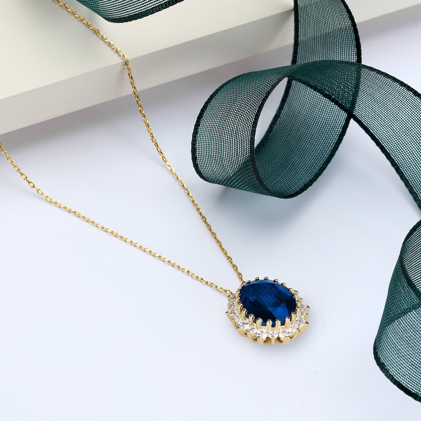 WOMEN'S LIVE DIAMOND NECKLACE LDY235111I. Dimensions: 42CM. Color: BLUE. Materials: 375# recycled yellow gold. Lab-grown sapphire + diam. Packaging: original LIVE DIAMOND box. Product with LIVE DIAMOND international guarantee.