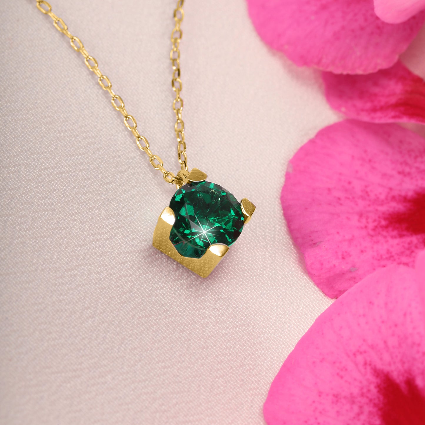WOMEN'S LIVE DIAMOND NECKLACE LDY07649I. Dimensions: 42CM. Color: GREEN. Materials: 375# recycled yellow gold. Lab-grown emerald. Packaging: original LIVE DIAMOND box. Product with LIVE DIAMOND international guarantee.