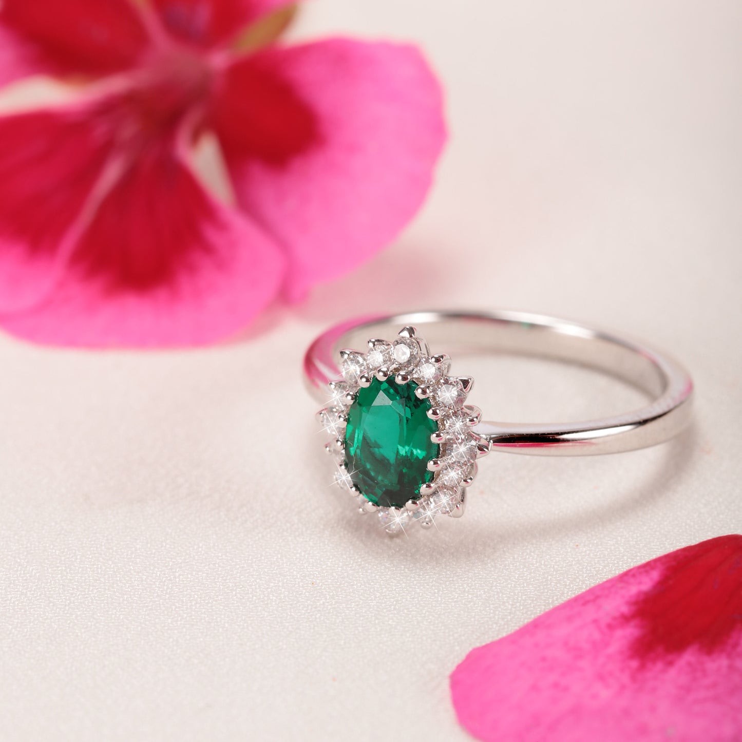WOMEN'S LIVE DIAMOND RING LD811034010I. Size: 10. Color: GREEN. Materials: 750# White Gold. Lab-grown emerald + diamond. Packaging: original LIVE DIAMOND box. Warranty: LIVE DIAMOND international warranty.