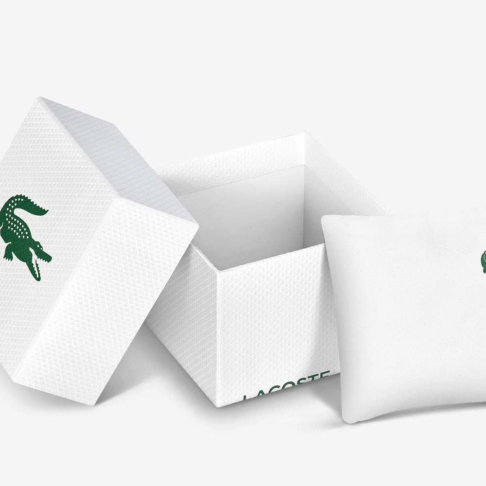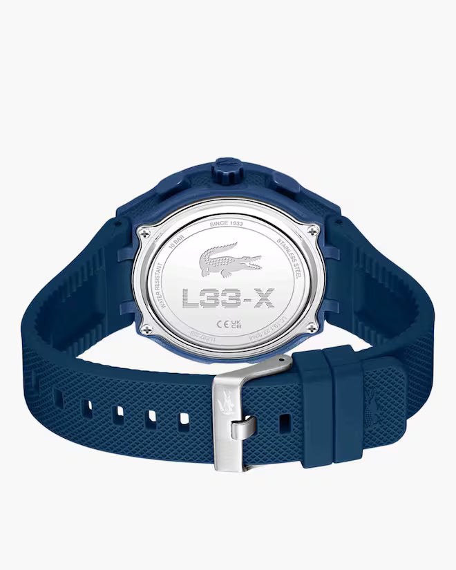 The Lacoste LC33 2011370 watch combines bold design and advanced functionality. The 45mm blue TR90 case houses a "petit piqué" textured dial and an analog-digital display, offering functions such as a stopwatch, timer, alarm, and date. The blue silicone strap ensures comfort and durability. Equipped with quartz movement, mineral glass, and water resistance up to 10 ATM (100 meters), it is ideal for everyday use and for those seeking a versatile watch with a distinctive design. Original Lacoste packaging. Official Lacoste warranty.
