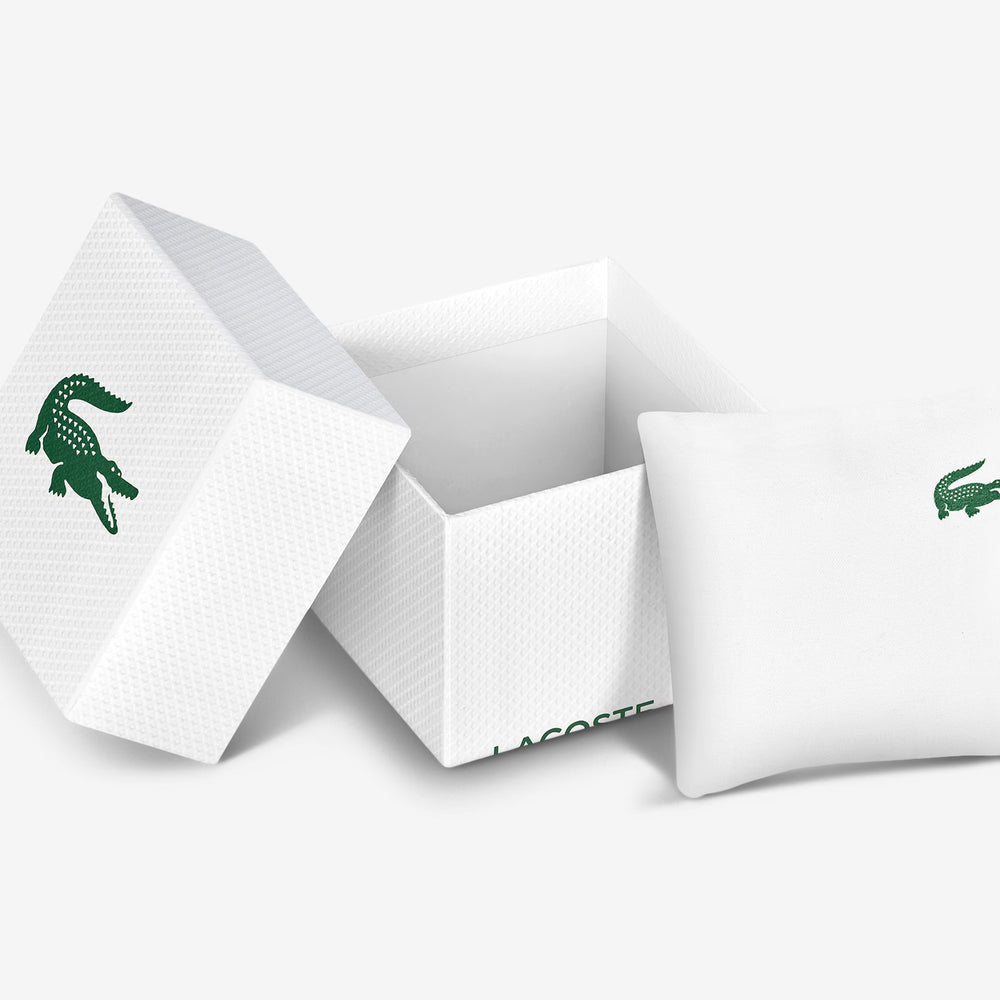 The Lacoste LC33 2011429 men's watch combines bold design with advanced functionality. The 45mm transparent blue TR90 case houses a "petit piqué" textured dial and a dual analog-digital display, offering functions such as a stopwatch, alarm, and date. The blue silicone strap ensures comfort and durability. Equipped with quartz movement, mineral glass, and water resistance up to 10 ATM (100 meters), it is ideal for everyday use and for those seeking a versatile watch with a distinctive style. Original Lacoste packaging. Official Lacoste warranty.