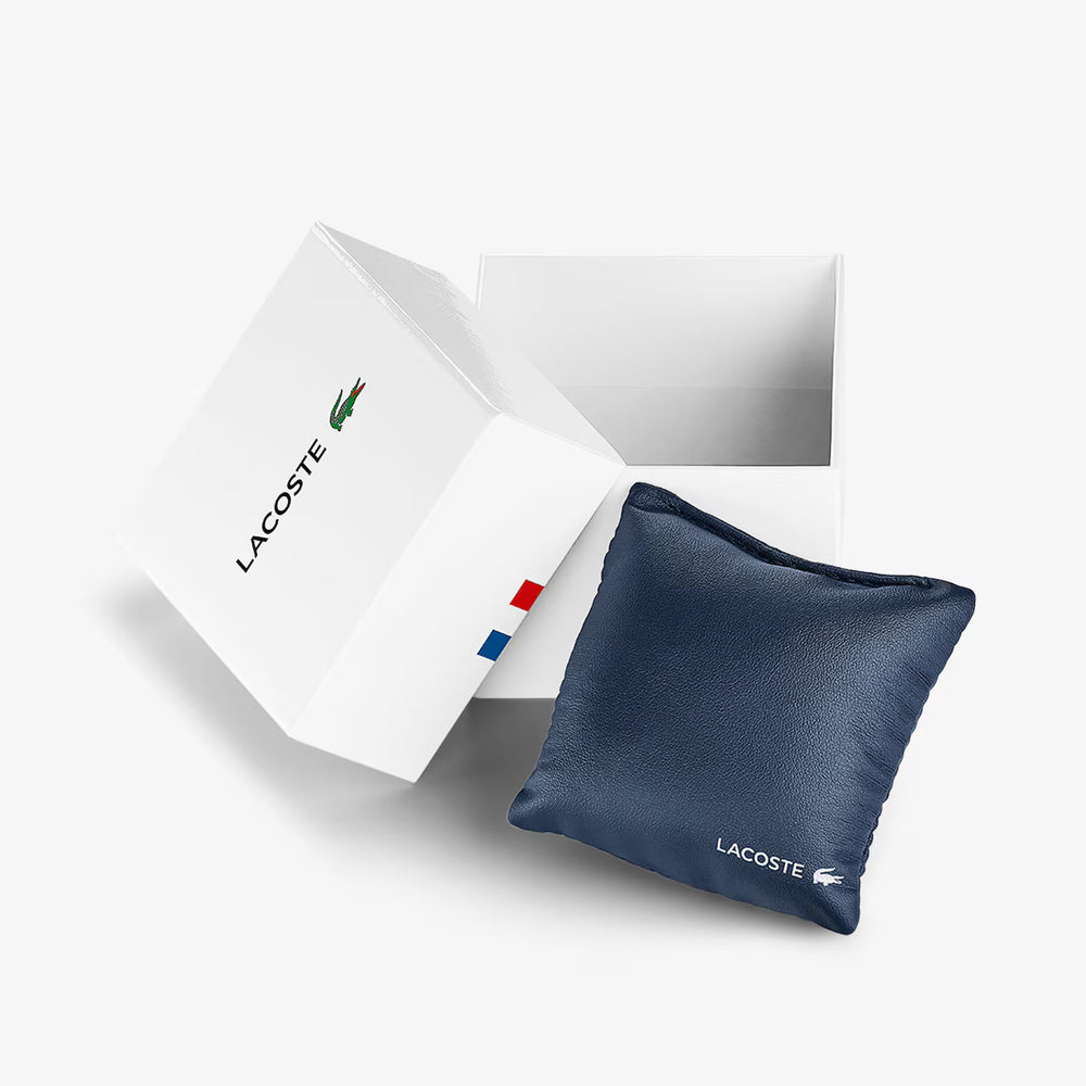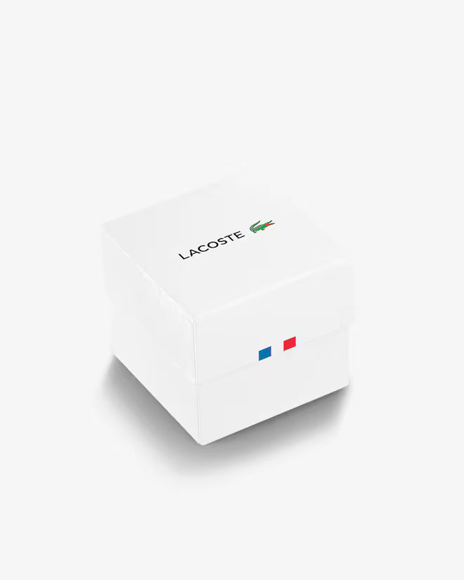 The Lacoste.12.12 watch (SKU 2011169) for men combines minimalist design and functionality in a versatile accessory. The 42 mm round white TR90 case houses a dial with baton indexes and white hands, while the white silicone strap ensures comfort and durability. With quartz movement and water resistance up to 5 ATM (50 meters), it is ideal for everyday use. This watch embodies the sporty elegance typical of the Lacoste brand, perfect for those seeking a clean and contemporary style. Original Lacoste packaging. Official Lacoste warranty.