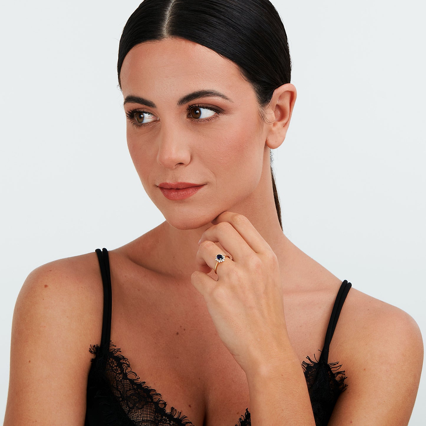 WOMEN'S LIVE DIAMOND CLASSIC GEM STONE RING LDY100168010I. Materials: 375‰ YELLOW GOLD, lab-grown sapphire + diamonds. Sapphire: 1 CT - main gem size 7x5 mm. Packaging: original LIVE DIAMOND box. Warranty: LIVE DIAMOND international warranty.
