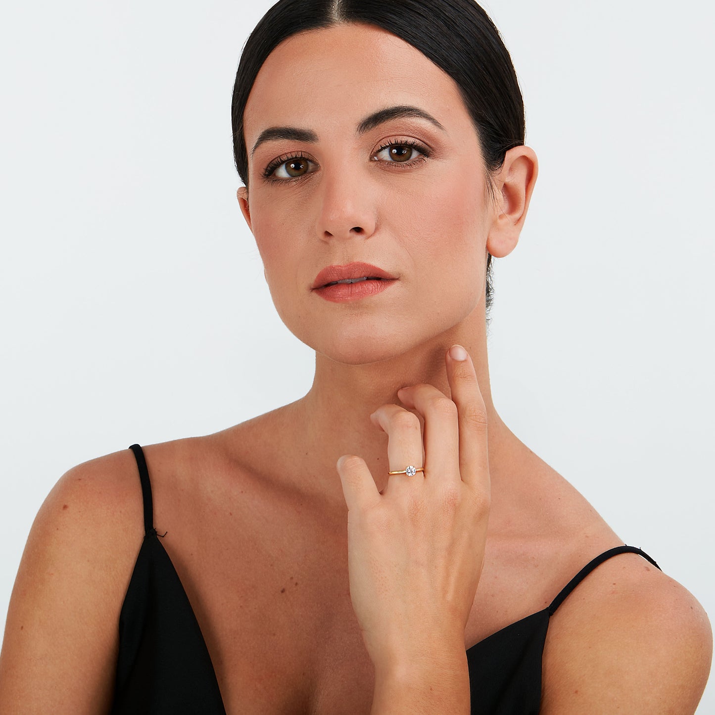 WOMEN'S RING LIVE DIAMOND CLASSIC DIAMOND LDY050144020I. Size: 20. Color: Yellow. Materials: 375# Yellow Gold. Lab-grown diamond. Packaging: original LIVE DIAMOND box. Warranty: LIVE DIAMOND international warranty.