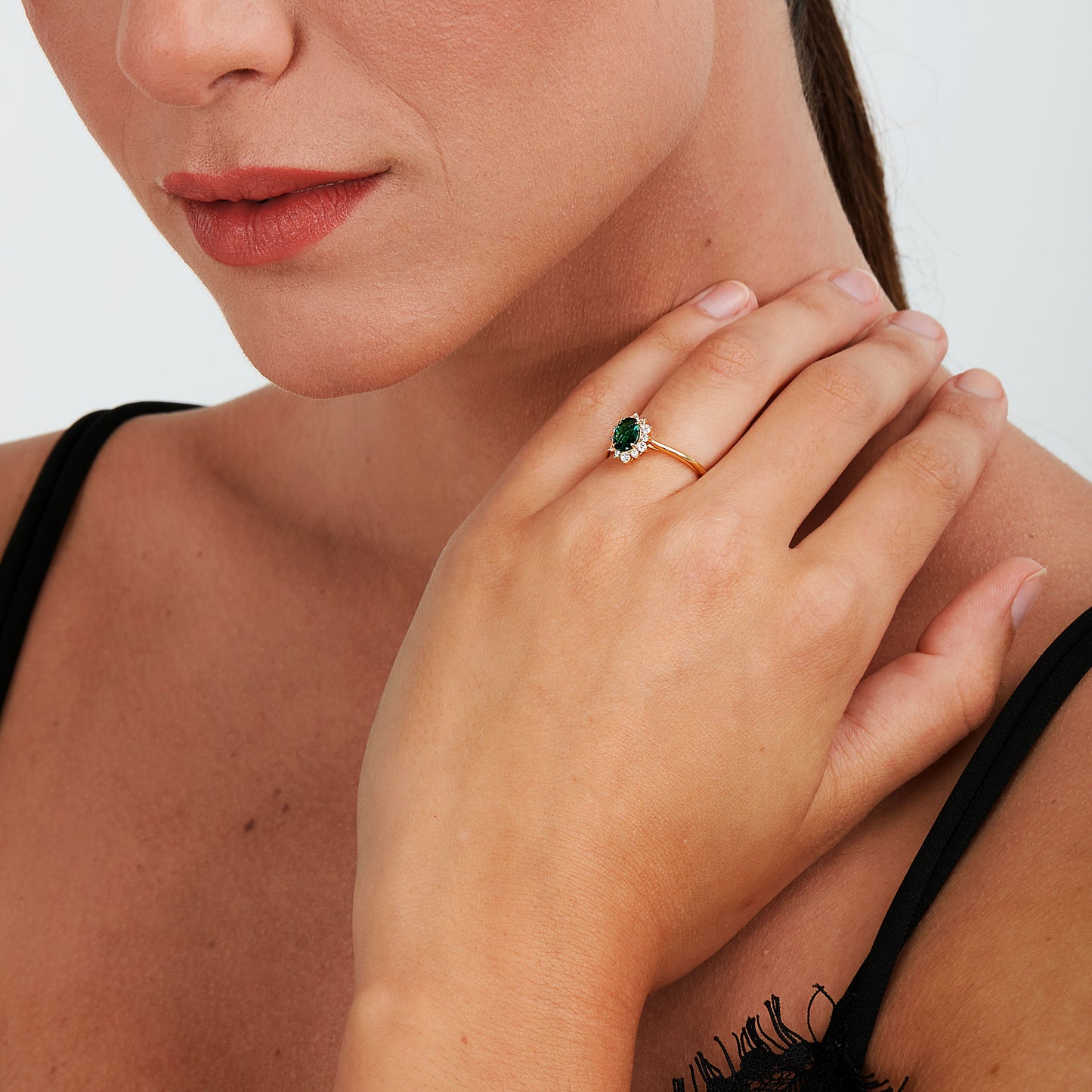 WOMEN'S LIVE DIAMOND CLASSIC GEM STONE RING LDY100169020I. Size: 20. Color: Yellow. Materials: 375# Yellow Gold. Lab-grown emerald + diamond. Packaging: original LIVE DIAMOND box. Warranty: LIVE DIAMOND international warranty.