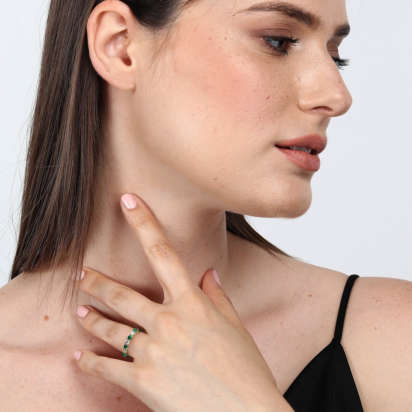 WOMEN'S LIVE DIAMOND RING LDY04055010. Size: 10. Color: GREEN. Materials: 375# Yellow Gold. Lab-grown emerald + diamond. Packaging: original LIVE DIAMOND box. Warranty: LIVE DIAMOND international warranty.