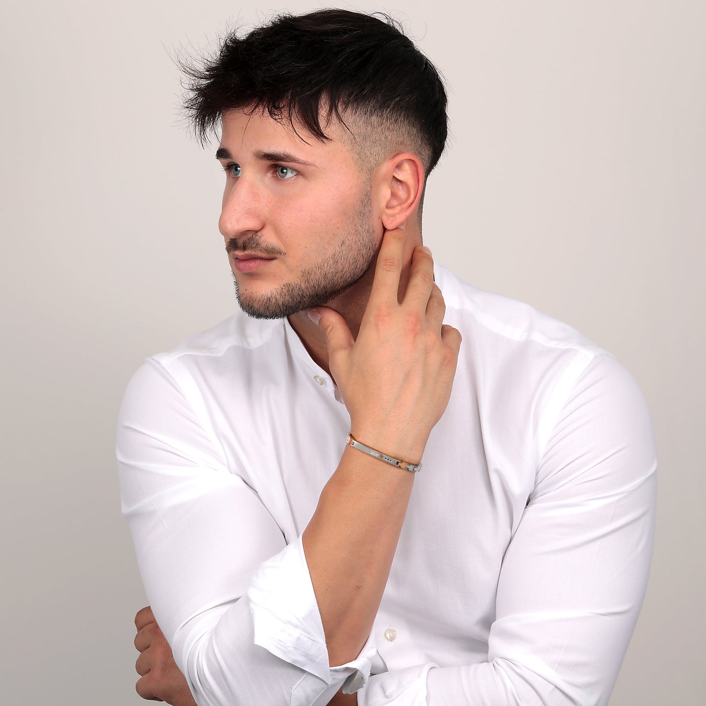 MEN'S MASERATI DIAMONDS JM521ATY11 bracelet. Dimensions: 22CM. Color: WHITE/BLACK. Materials: Steel. Diamond. IP rose gold. Clasp type: JEWELRY buckle. Weight: 30.77. Product Warranty: MASERATI International Warranty. Packaging: Original MASERATI box.