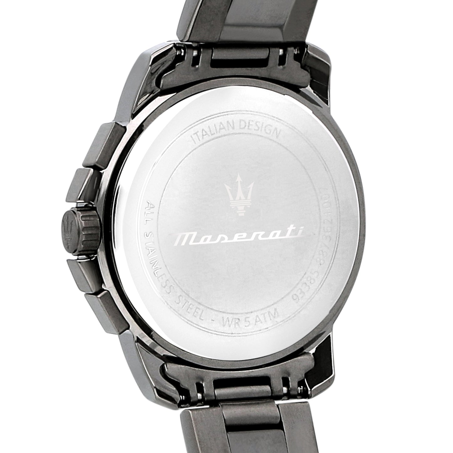 Maserati Successo Men's Watch R8873621007. Chronograph watch from the Maserati Successo men's collection. Case color: gunmetal PVD; dial color: black; bracelet color: gunmetal PVD. 52 mm diameter case made of 316L stainless steel with gunmetal PVD treatment and date display. Mineral glass. Bracelet made of 316L stainless steel with gunmetal PVD treatment and deployant clasp. Quartz movement. Water resistance up to 5 ATM. Packaging: original Maserati box. Warranty: international Maserati warranty.