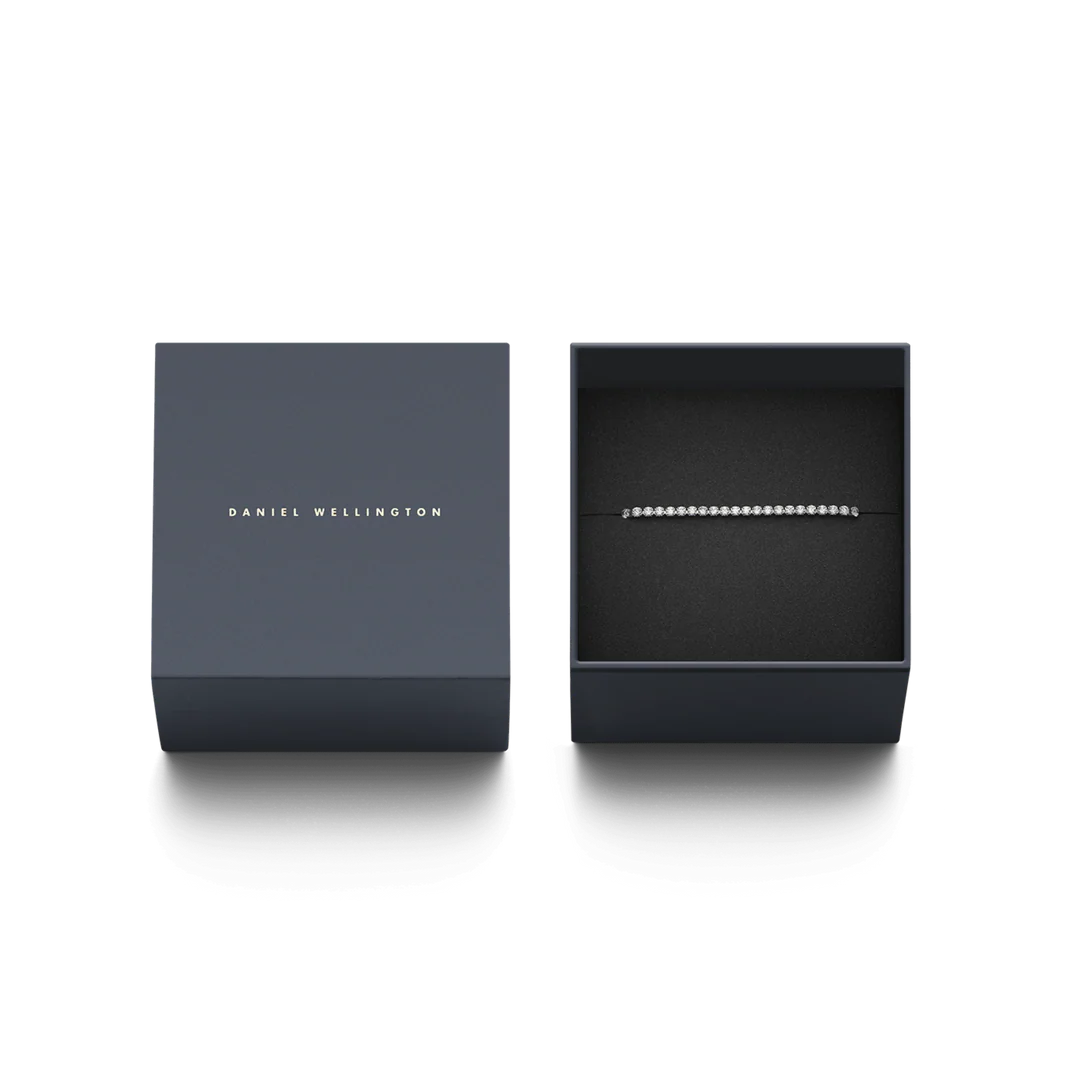 Daniel Wellington Classic Tennis Necklace DW00400389. The Daniel Wellington DW00400389 necklace, part of the Classic Tennis collection, is an elegant and versatile accessory, ideal for adding a touch of sparkle to your everyday look. Crafted from 316L stainless steel with a rhodium finish, this necklace features a series of 2.5 mm diameter white crystals, individually set for long-lasting sparkle. The length is adjustable between 40 and 44 cm, thanks to the three sizing rings, allowing for a personalized fit. Original Daniel Wellington packaging. Official Daniel Wellington guarantee.