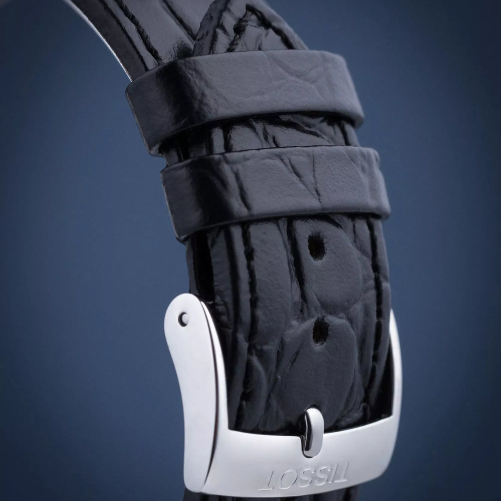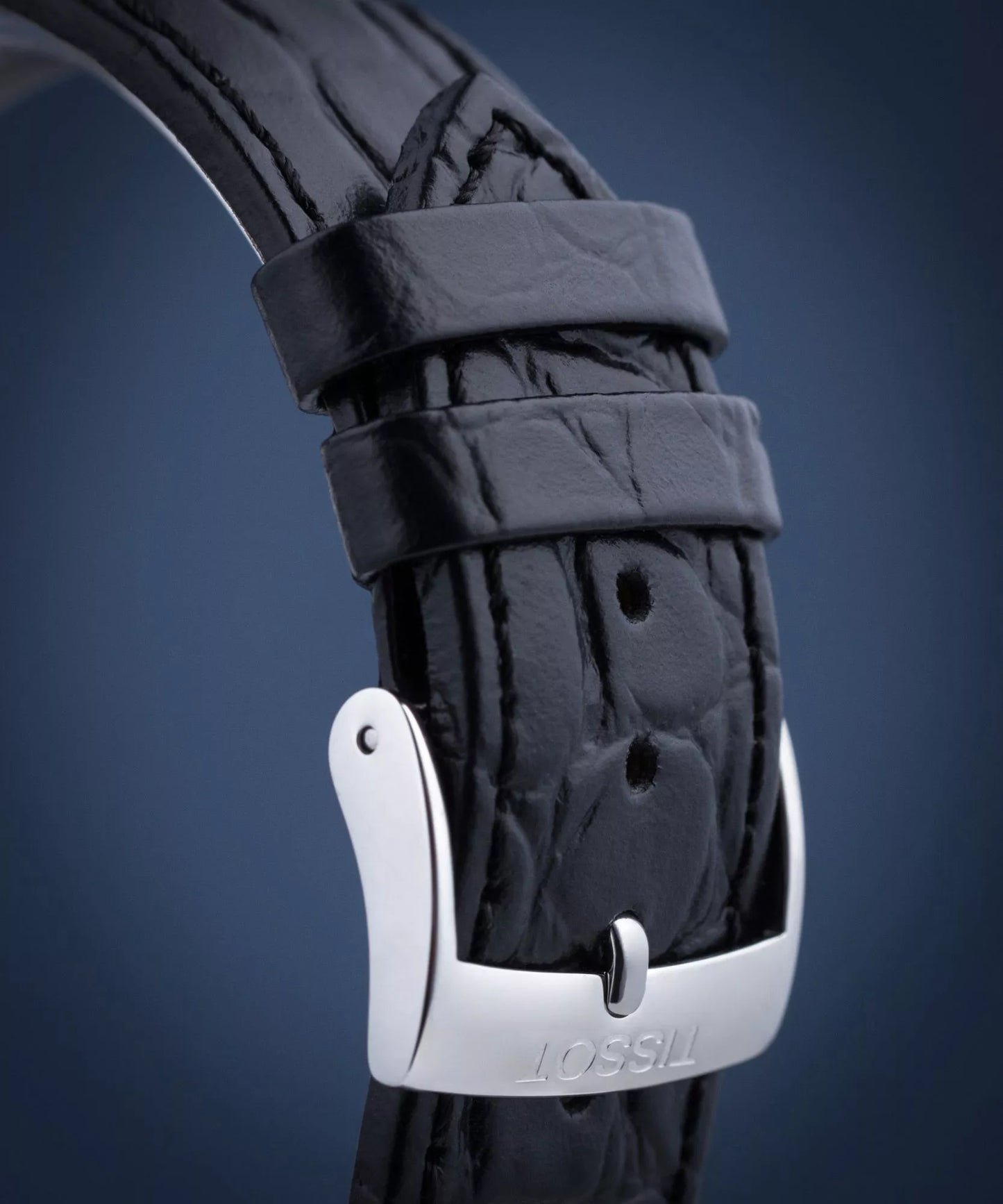 Tissot Carson Premium Automatic Men's Watch. Item number: T122.407.16.051.00. The Tissot Carson, a timeless watch for any time and place, will be the perfect partner for every important occasion in your life, ensuring that every moment is perfect at the right time. Its classic style allows it to never go out of style, while giving it a sumptuous look, highlighted by an elegant dial design and thin, elongated hands that move on the dial in time. Tissot watch with Powermatic 80 Swiss automatic movement with up to 80 hours of power reserve, 40mm 316L stainless steel case with transparent caseback, domed scratch-resistant sapphire crystal with anti-reflective coating, black dial with indexes, black leather strap, standard buckle, interchangeable bracelet with quick release. Water resistant to 5 bar. 2-year warranty.