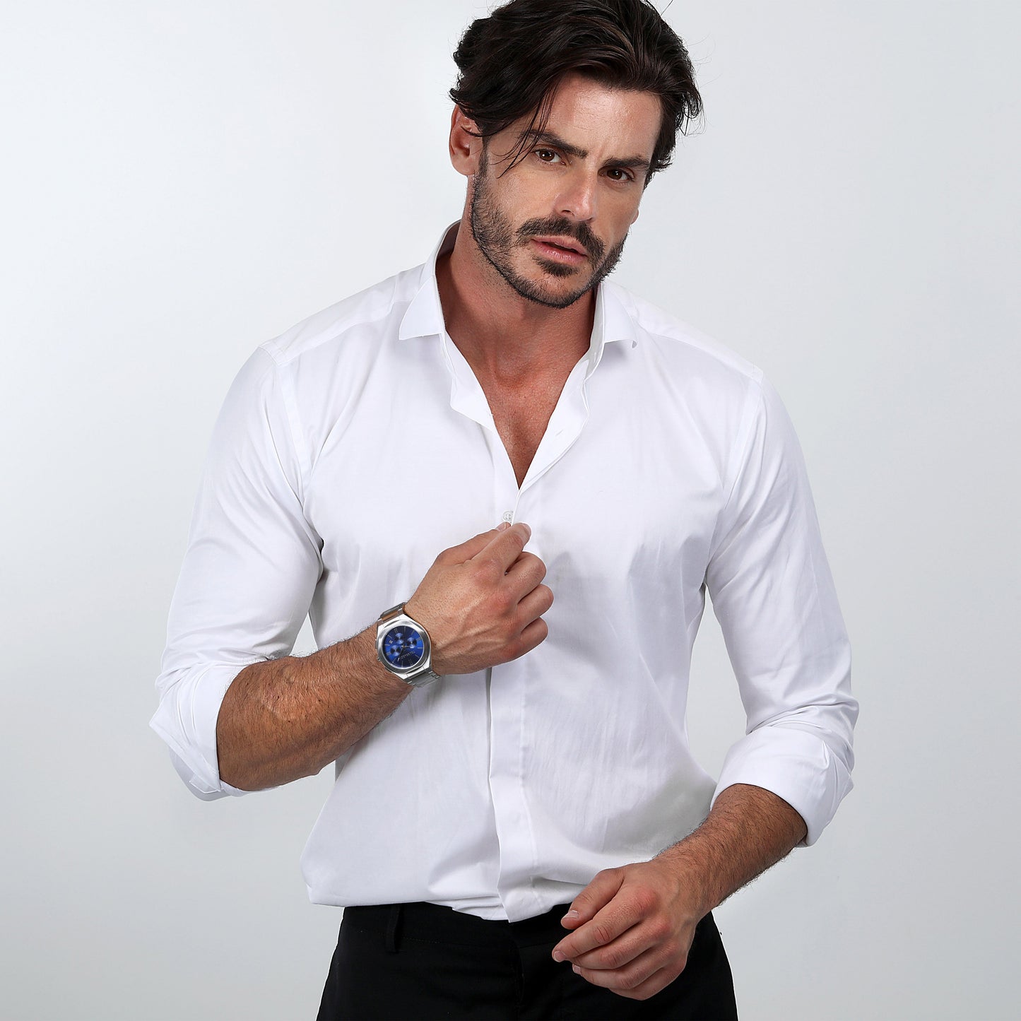 TRUSSARDI Men's Watch from the BRINK collection. Watch with MVT. MIYOTA JP25 movement, Multifunction function. Dial: Multifunction 3 subdials + date display at 4.5 o'clock, polished + sandblasted + brushed steel finish, BLUE. SUNRAY color. Strap type: Solid. Strap material: Steel-colored metal bracelet. Mineral glass case, size 44. Clasp: DEPLOYANTE buckle with buttons. Water resistance: 5 ATM. Weight: 168 gr. Product code: R2453156004. Color: SILVER. Materials: Steel. Packaging: original TRUSSARDI box. Warranty: TRUSSARDI international warranty.