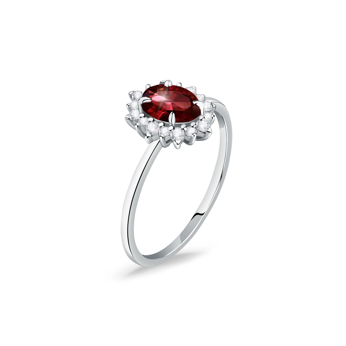 WOMEN'S LIVE DIAMOND CLASSIC GEM STONE RING LDW100167020I. Size: 20. Color: White. Materials: 375# White Gold, lab-grown ruby + diamond. Packaging: original LIVE DIAMOND box. Warranty: LIVE DIAMOND international warranty.