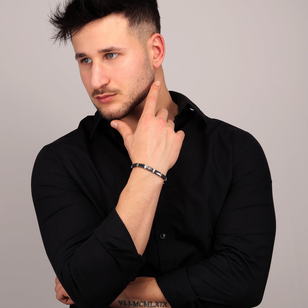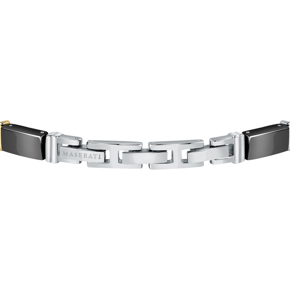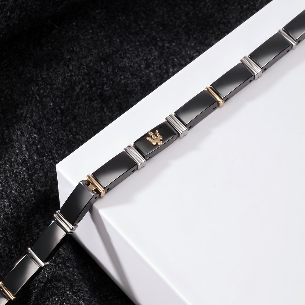 MEN'S MASERATI CERAMIC BRACELET JM221ATZ03. Dimensions: 22CM. Materials: Steel, ceramic, YG PVD. Clasp Type: JEWELRY Buckle. Weight: 33.24. Product Warranty: MASERATI International Warranty. Packaging: Original MASERATI box.