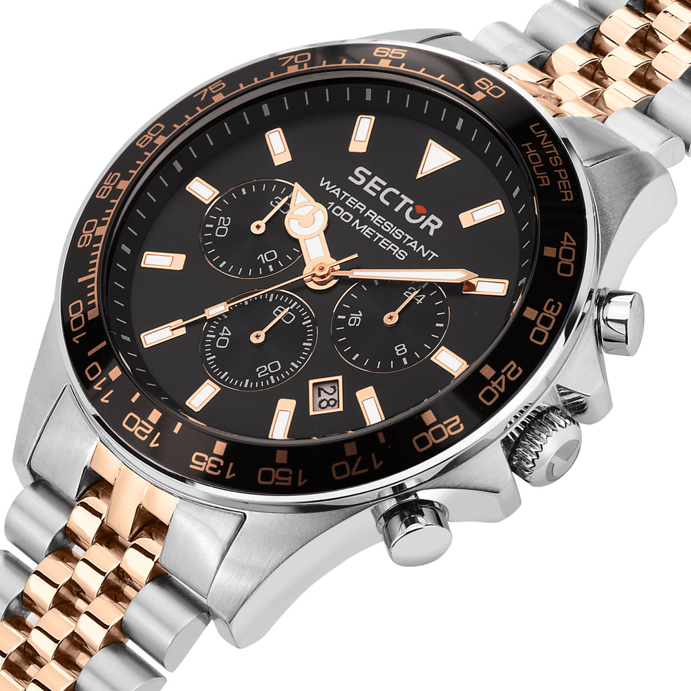 SECTOR 230 WATCH - R3273661031 - Gender: Men, Case Material & Finish: Stainless Steel, Case size: 43mm, Case thickness: 11.80, Case Colour: Silver, Rose-gold, Black, Crystal: Mineral crystal, Strap Material: Metal, Strap Colour: Silver, Rose Gold, Clasp type: Diver's buckle with safety lock, Water resistant: 10 atm, Guarantee: Sector 2 years guarantee, Packaging: Sector original, Sector experience: No Limits