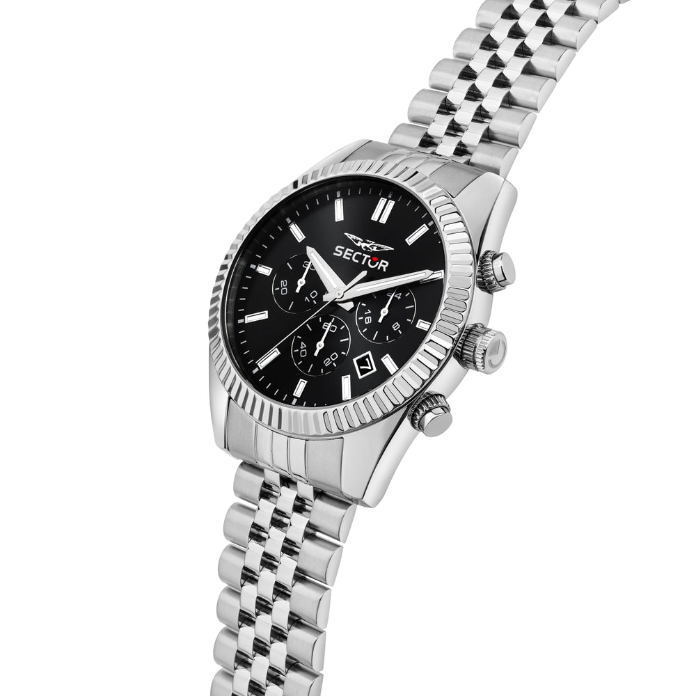 SECTOR R3273640001 men's watch from the SECTOR 240 collection. Case Material & Finish: Stainless Steel, Case size: 41.00, Case Thickness: 10.70, Case Finishing: Polished, Case Colour: Silver, Crystal: Mineral crystal, Strap Material: Metal, Strap Colour: Silver, Clasp type: Diver's buckle with safety lock, Water resistant: 5 atm, Guarantee: Sector 3-year guarantee, Packaging: Sector original
