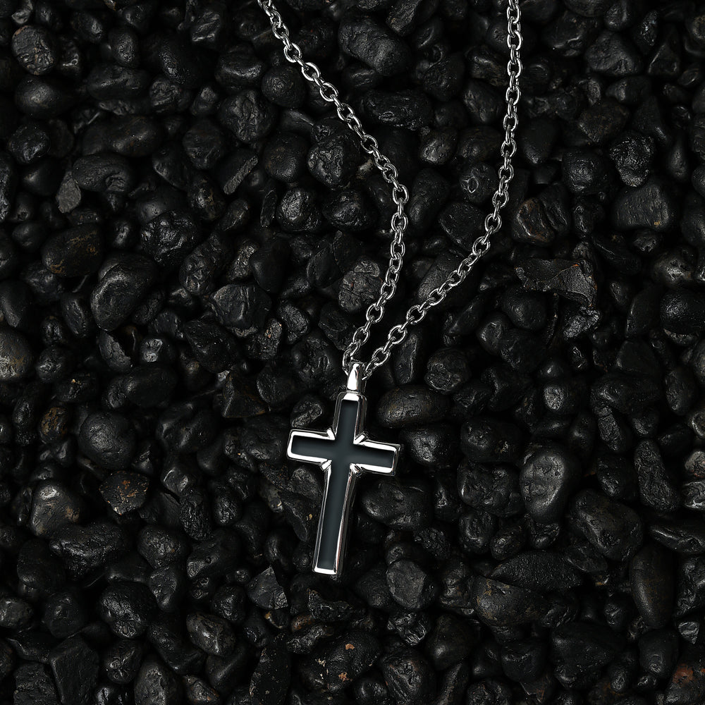 MEN'S SECTOR SPIRIT SZQ28 cross-shaped necklace. Dimensions: 50.5 cm. Materials: Steel, Enamel. Clasp type: Lobster clasp. Weight: 11.07 g. Product warranty: SECTOR International Warranty. Packaging: Original SECTOR box.