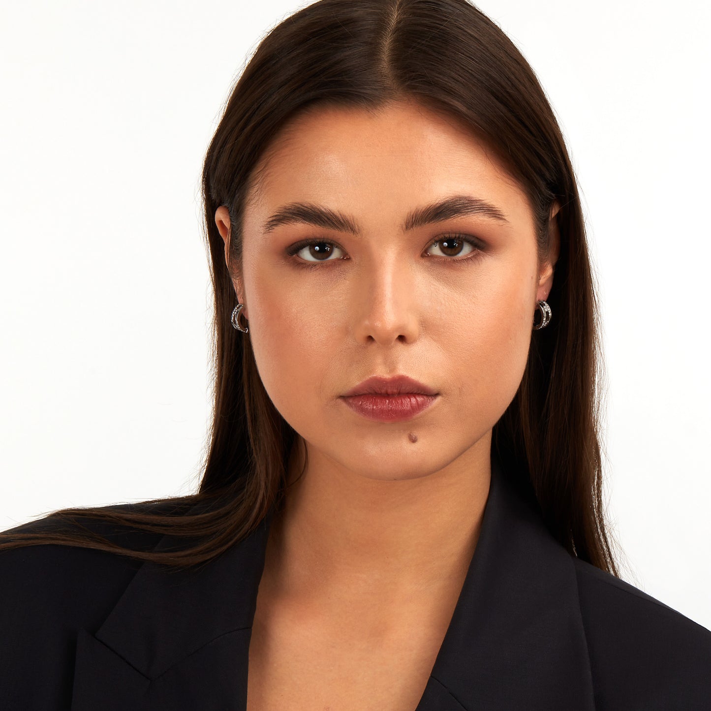 TRUSSARDI T-LOGO TJAXC70 WOMEN'S earrings. Dimensions: Ø1.5CM. Materials: Steel, crystals. Packaging: original TRUSSARDI box. Product with TRUSSARDI international warranty.