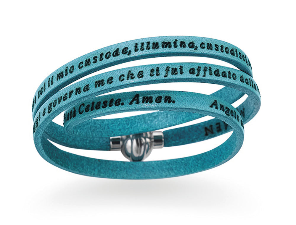 Bracciale in pelle e acciaio con Pregh. Angelo Custode incisa - Turchese - Mis. S: 48 cm/M: 50 cm/L: 52 cm. Collezione: Amen Gioielli JUNIOR. Codice prodotto: AJADIT13-50. Tipologia: Bracciale da junior. Descrizione: Bracciale in Pelle. Taglia: M - 50 cm. Lunghezza/Dimensioni: M: 50 cm. Finitura: Turchese. Peso: 9,5. Confezione: confezione originale Amen. Garanzia: garanzia internazionale Amen 24 mesi.