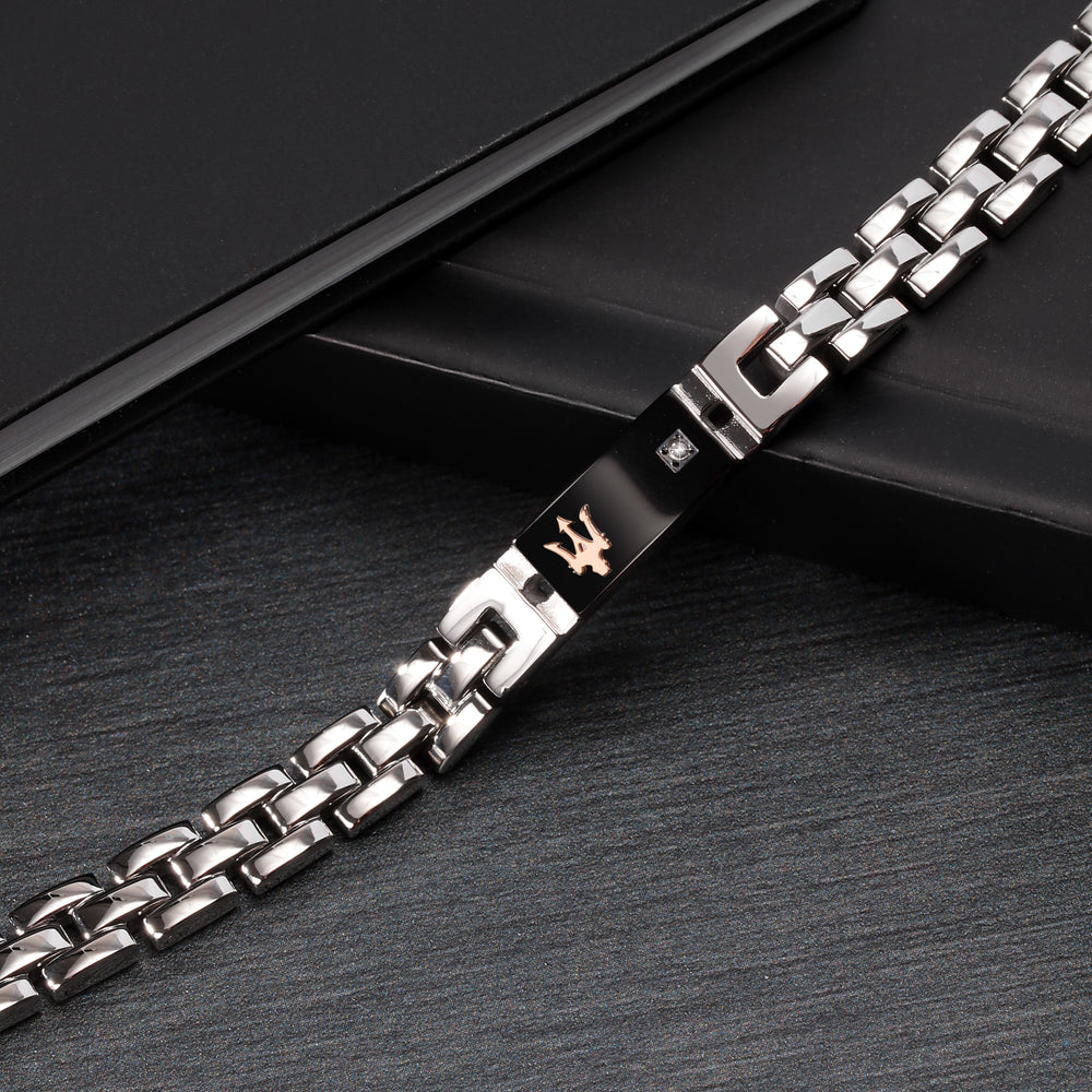 Bracciale UOMO MASERATI DIAMONDS JM221ATY05. Dimensioni: 22CM. Colore: BIANCO. Materiali: Acciaio. diamanti. nero e PVD RG. Tipo chiusura: Fibbia GIOIELLERIA. Peso: 26,6. Garanzia Prodotto: Garanzia Internazionale MASERATI. Confezione: Scatola originale MASERATI
