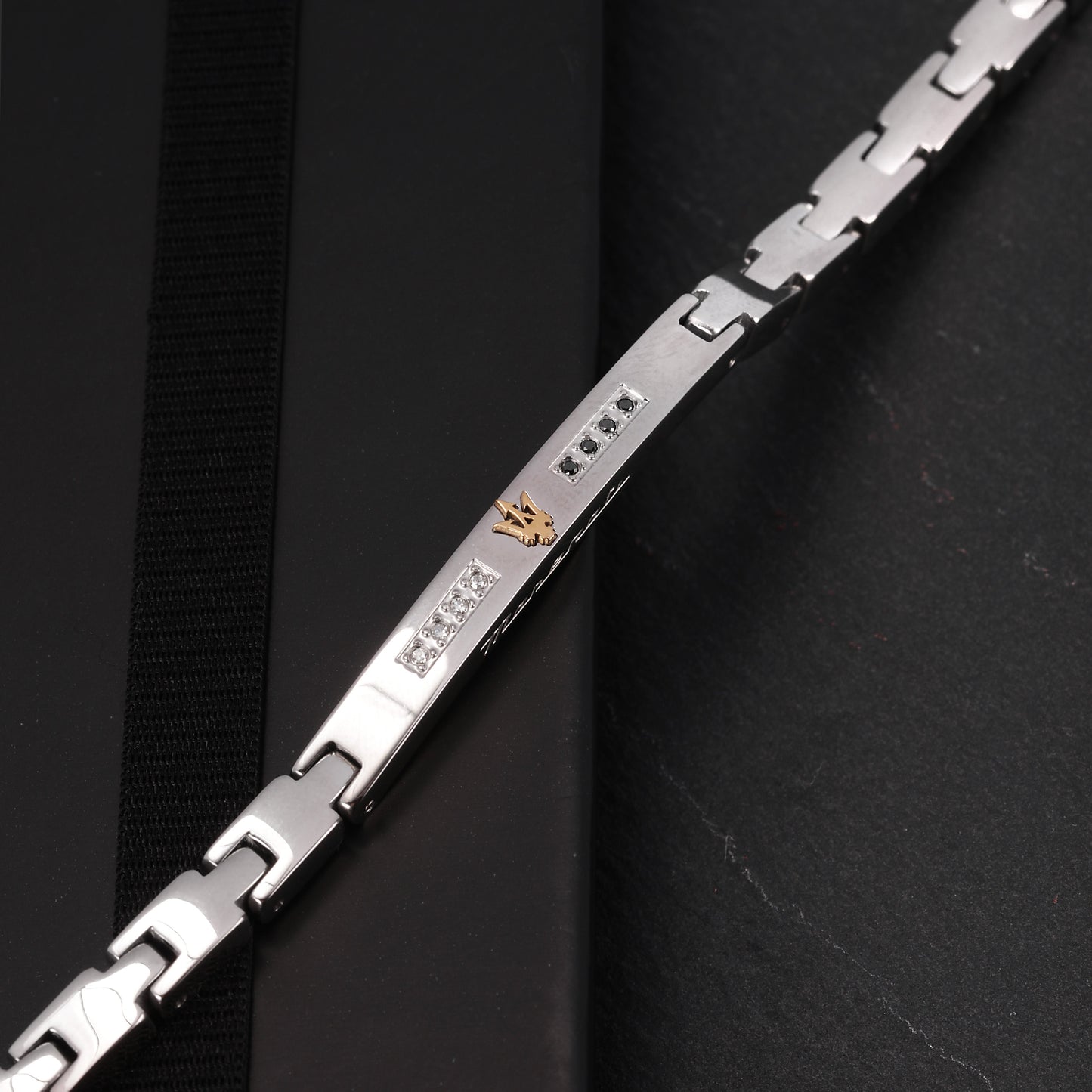 Bracciale UOMO MASERATI DIAMONDS JM521ATY12. Dimensioni: 22CM. Colore: BIANCO/NERO. Materiali: Acciaio. diamante. IP oro giallo. Tipo chiusura: Fibbia GIOIELLERIA. Peso: 30,8. Garanzia Prodotto: Garanzia Internazionale MASERATI. Confezione: Scatola originale MASERATI