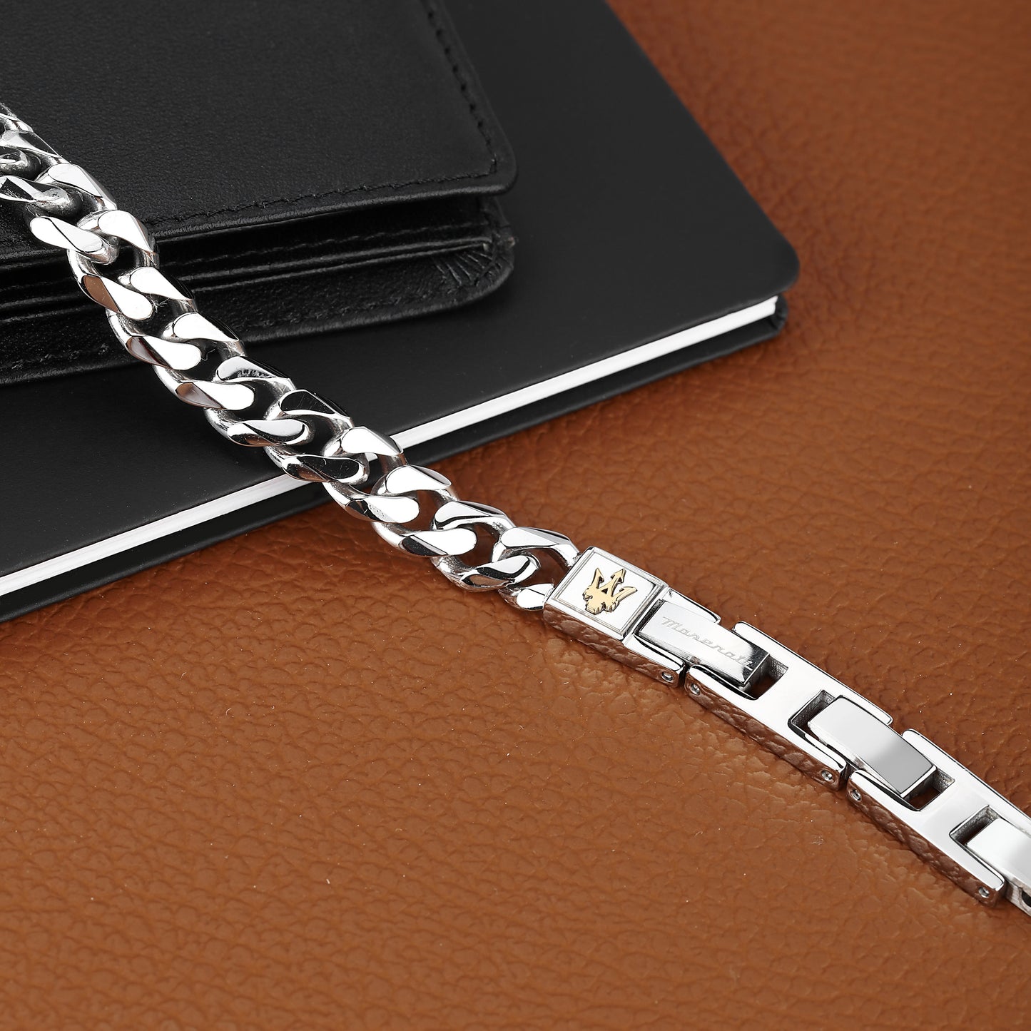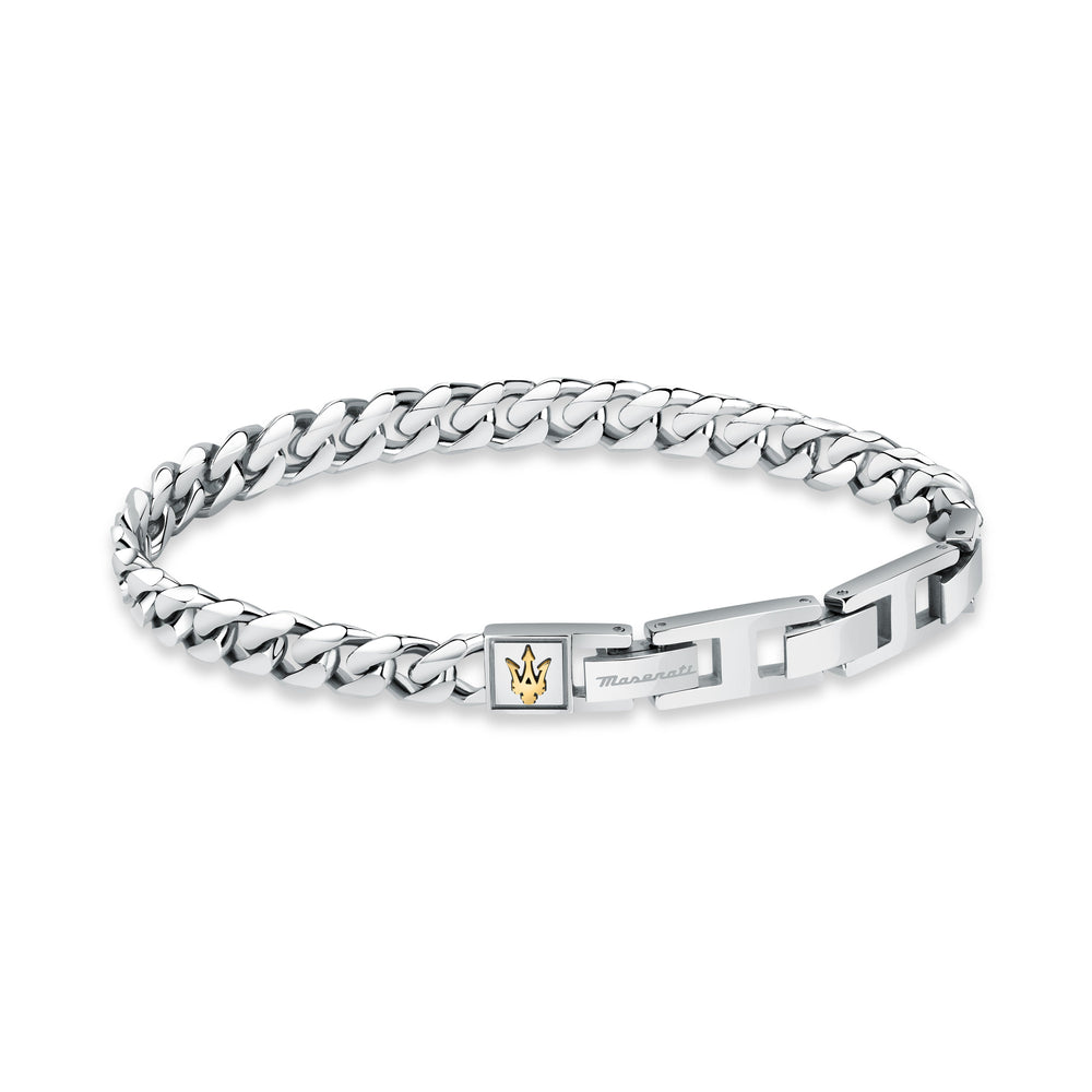 Bracciale UOMO MASERATI ICONIC JM422AVD09. Dimensioni: 22CM. Materiali: Acciaio. IP YG. Tipo chiusura: Fibbia GIOIELLERIA. Peso: 25,33. Garanzia Prodotto: Garanzia Internazionale MASERATI. Confezione: Scatola originale MASERATI