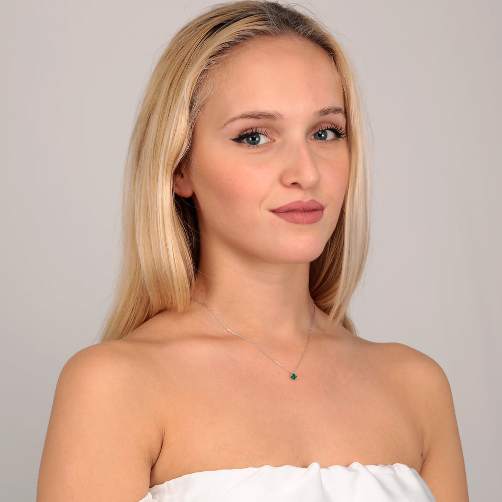 COLLANA DONNA LIVE DIAMOND LD07649I. Dimensioni: 42CM. Colore: VERDE. Materiali: ORO BIANCO 375‰, smeraldo lab grown, carati 0,70, dimensione pietra 6mm. Confezione: scatola originale LIVE DIAMOND. Prodotto con garanzia internazionale LIVE DIAMOND.