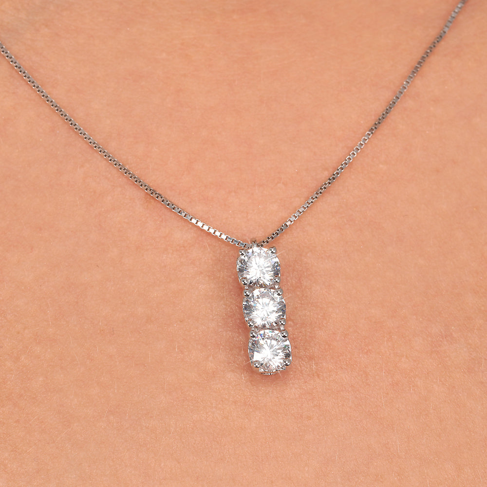 COLLANA DONNA LIVE DIAMOND LD09010I. Dimensioni: 42CM. Materiali: ORO BIANCO 375‰, DIAMANTI TAGLIO BRILLANTE, COLORE GH, PUREZZA SI. Diamanti lab grown trilogy CT 0,90. Confezione: scatola originale LIVE DIAMOND. Prodotto con garanzia internazionale LIVE DIAMOND.