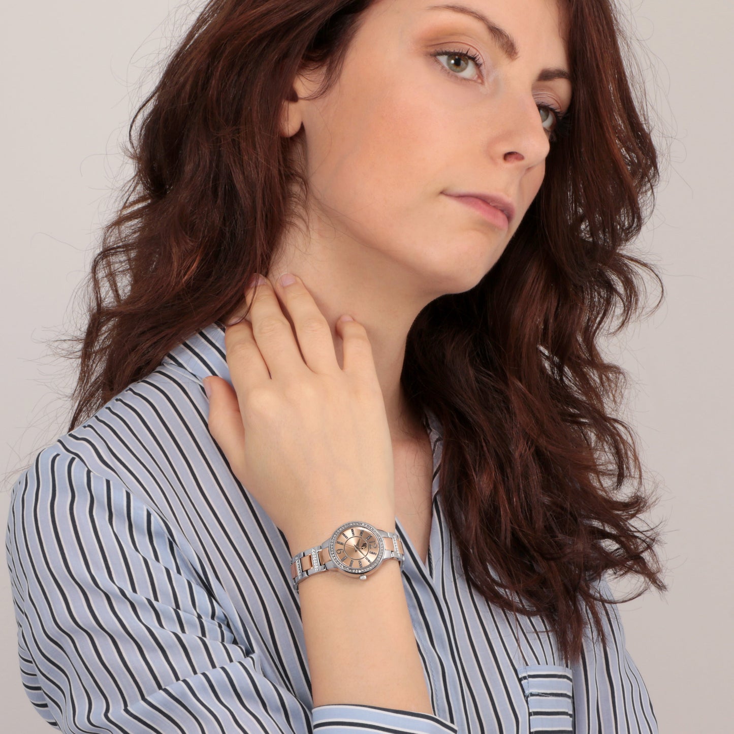 Orologio Donna B&G della collezione DESIDERIO . Orologio con movimento MVT. M2035, funzione Solo tempo. 3H. Quadrante: 3 lancette indici UPMR, finitura Lega. Lucido, colore ORO ROSA. SUNRAY. Tipo cinturino: Solid. Materiale cinturino: Lega di colore Oro Rosa. Acciaio. Cassa in Vetro minerale di dimensioni 30. Chiusura: Fibbia GIOIELLERIA. Resistenza all'acqua: 3 ATM. Peso: 70,5 gr. Codice prodotto: R3853247514. Materiali: Lega. PVD Oro rosa. Confezione: scatola originale B&G. Garanzia: garanzia internazionale B&G