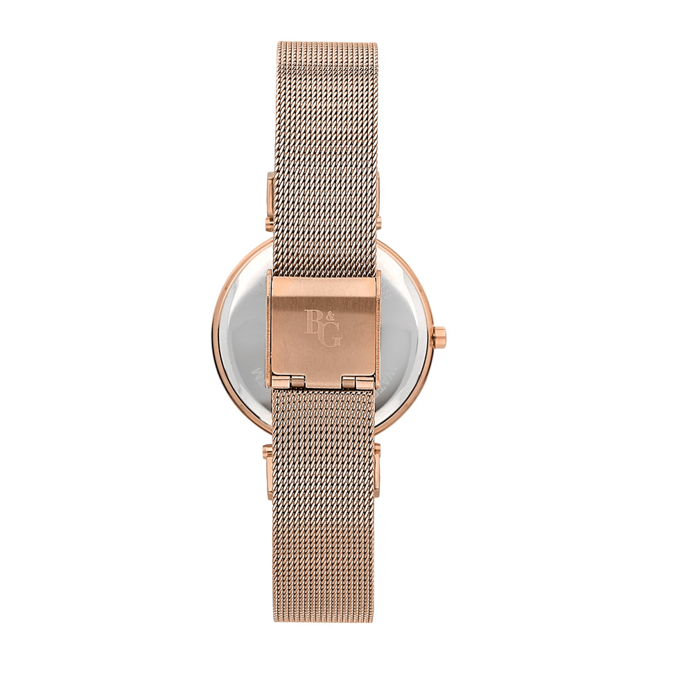 Orologio Donna B&G della collezione SOIREE. Orologio con movimento MVT. M2025, funzione Solo tempo. 2H. Quadrante: 2 lancette indici UPMR, finitura Lega. Lucido, colore ARGENTO. Tipo cinturino: Mesh Band. Materiale cinturino: Bracciale in Metallo di colore Oro Rosa. Cassa in Vetro minerale di dimensioni 34. Chiusura: Clip e gancio. Resistenza all'acqua: 3 ATM. Peso: 62 gr. Codice prodotto: R3853294501. Colore: ORO ROSA. Materiali: Lega. Acciaio. PVD Oro Rosa. Confezione: scatola originale B&G. Garanzia: garanzia internazionale B&G