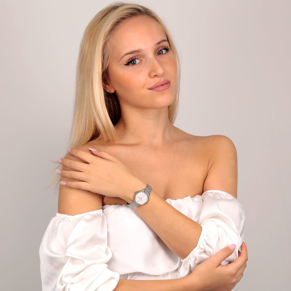 Orologio Donna LUCIEN ROCHAT della collezione CHARME. Orologio con movimento MVT VJ20 2H TYPE L, funzione Solo tempo. 2H. Quadrante: 2 lancette UPMR romani a ore 6&12. altri indici, finitura Acciaio. lucido, colore BIANCO. Tipo cinturino: Solid. Materiale cinturino: Bracciale in Metallo di colore Acciaio. Cassa in Vetro zaffiro di dimensioni 30. Chiusura: Fibbia DEPLOYANTE con pulsanti. Resistenza all'acqua: 3 ATM. Peso: 78 gr. Codice prodotto: R0453115511. Materiali: Acciaio. Diamanti Naturali Selezionati H/I. Confezione: scatola originale LUCIEN ROCHAT. Garanzia: garanzia internazionale LUCIEN ROCHAT