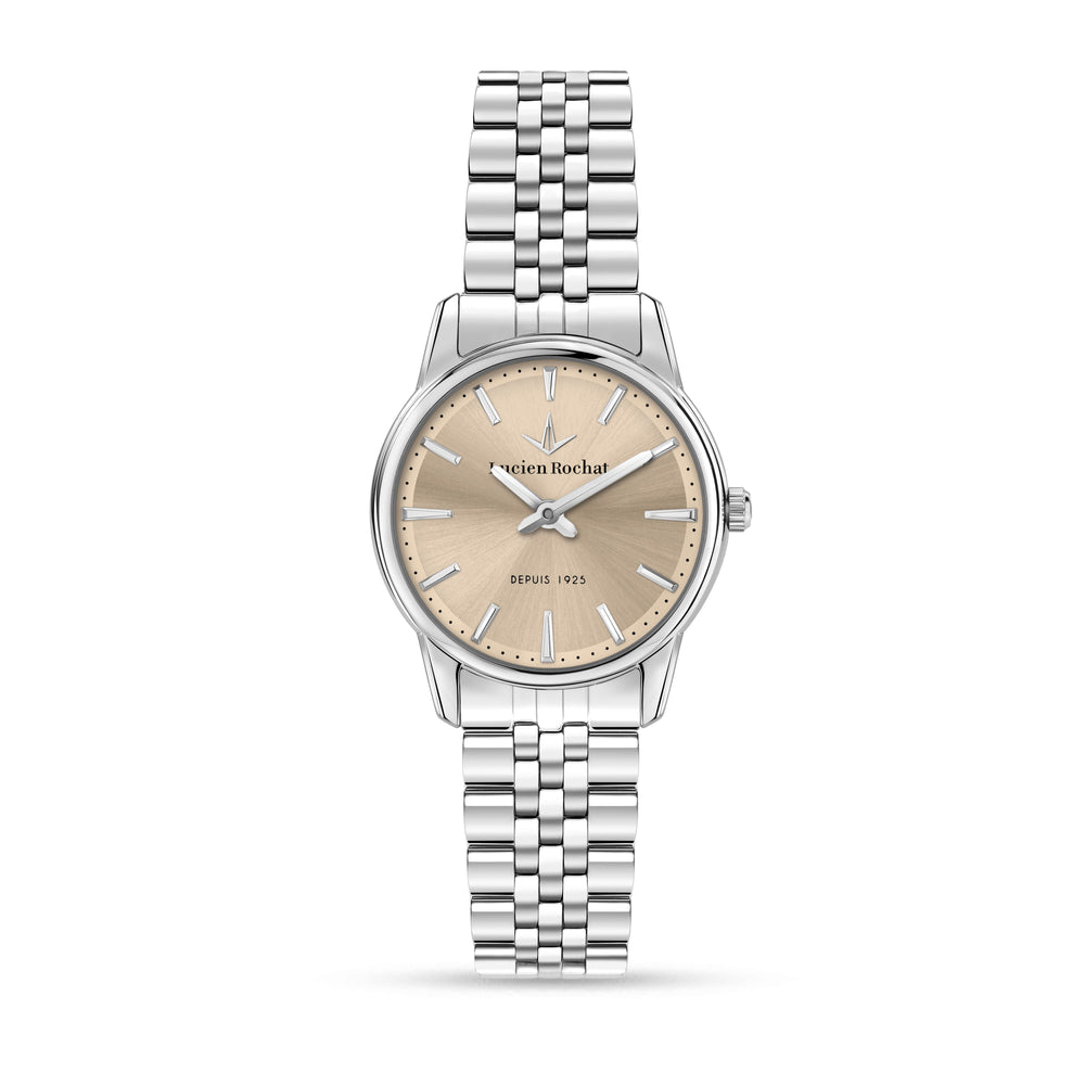 Orologio Donna LUCIEN ROCHAT della collezione ICONIC. Orologio con movimento MVT.MIYOTA GL22, funzione Solo tempo. 2H. Quadrante: 3 lancette indice applicato, finitura Acciaio. lucido, colore ROSA. MULTI FINISHING. Tipo cinturino: Solid. Materiale cinturino: Bracciale in Metallo di colore Acciaio. Cassa in Vetro minerale, trattamento zaffiro di dimensioni 28. Chiusura: Fibbia DEPLOYANTE con pulsanti. Resistenza all'acqua: 3 ATM. Peso: 66,61 gr. Codice prodotto: R0453116505. Colore: ARGENTO. Materiali: Acciaio. Confezione: scatola originale LUCIEN ROCHAT. Garanzia: garanzia internazionale LUCIEN ROCHAT