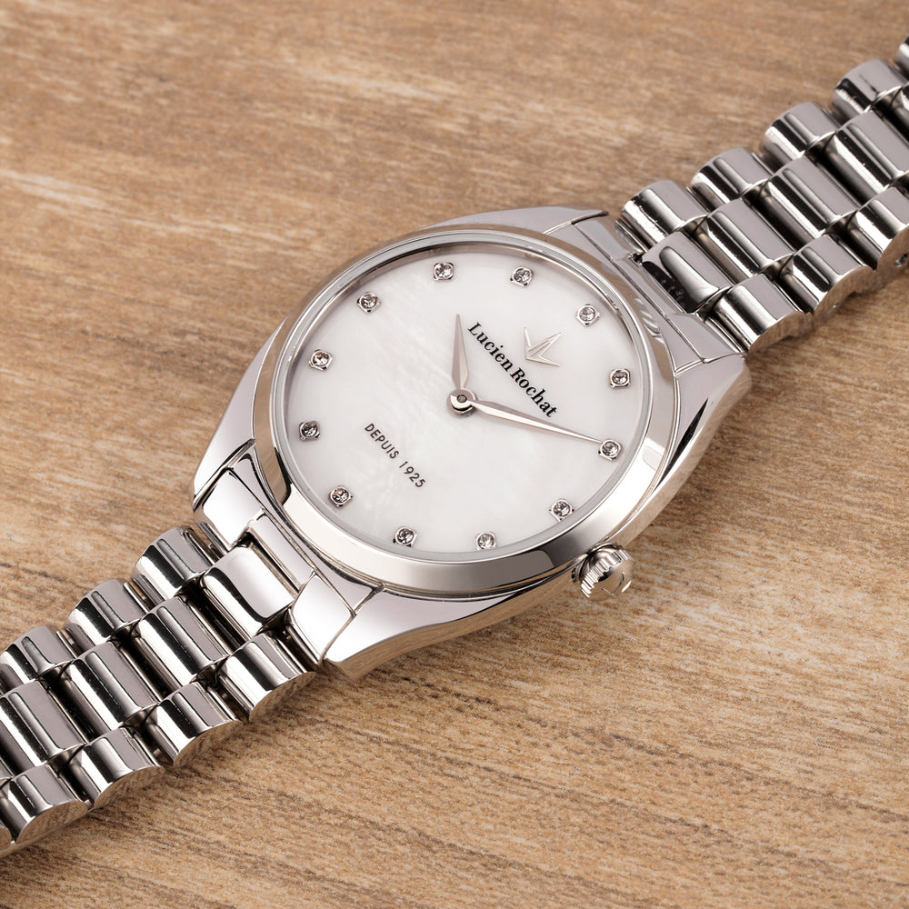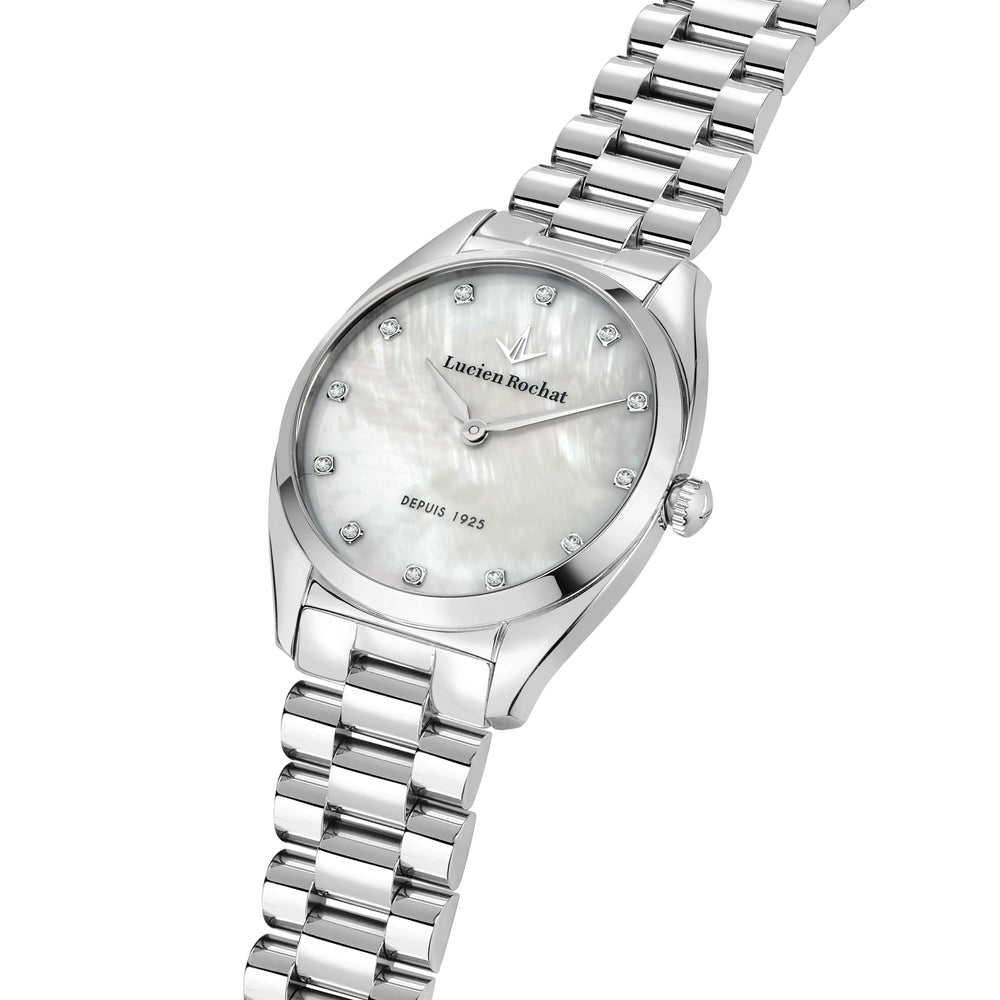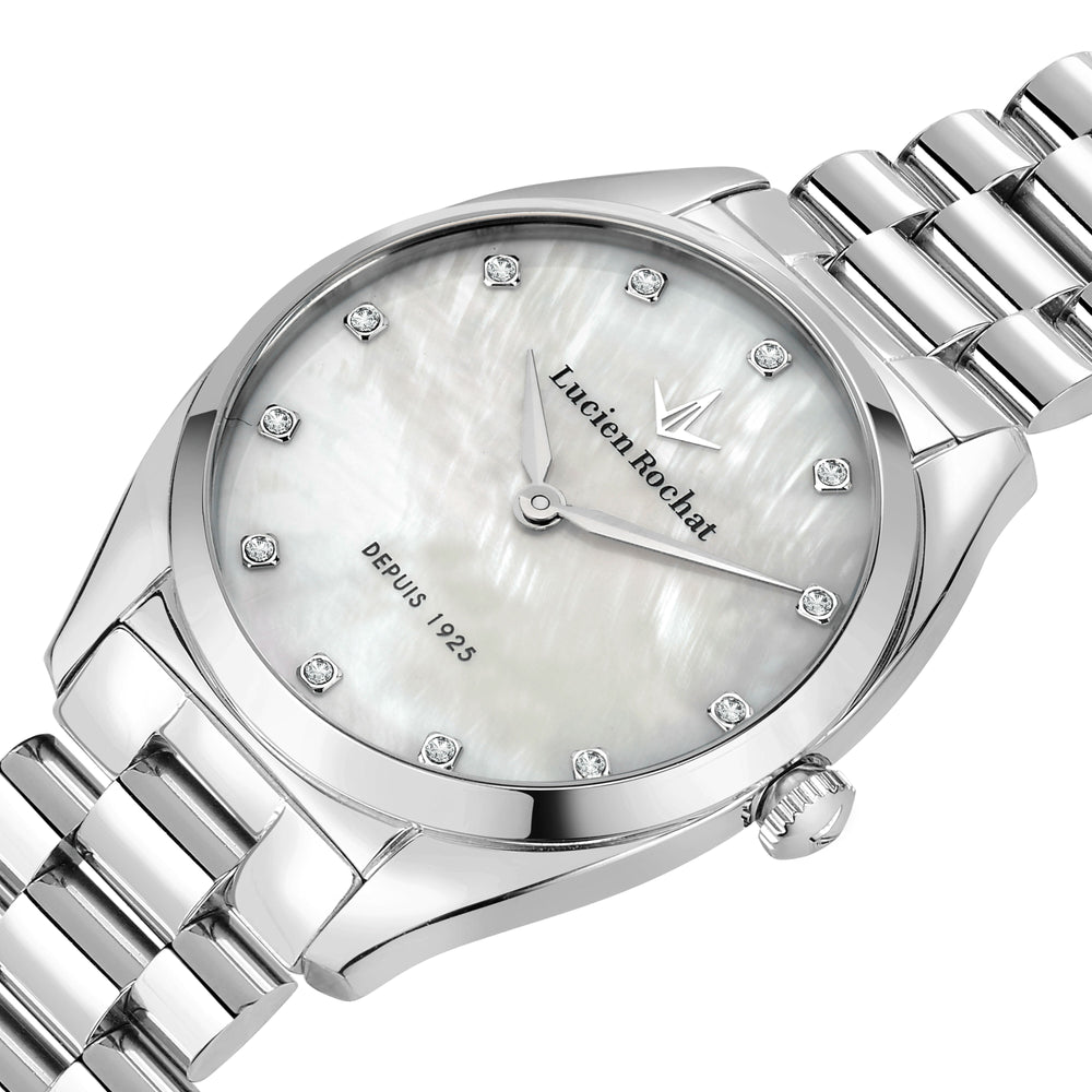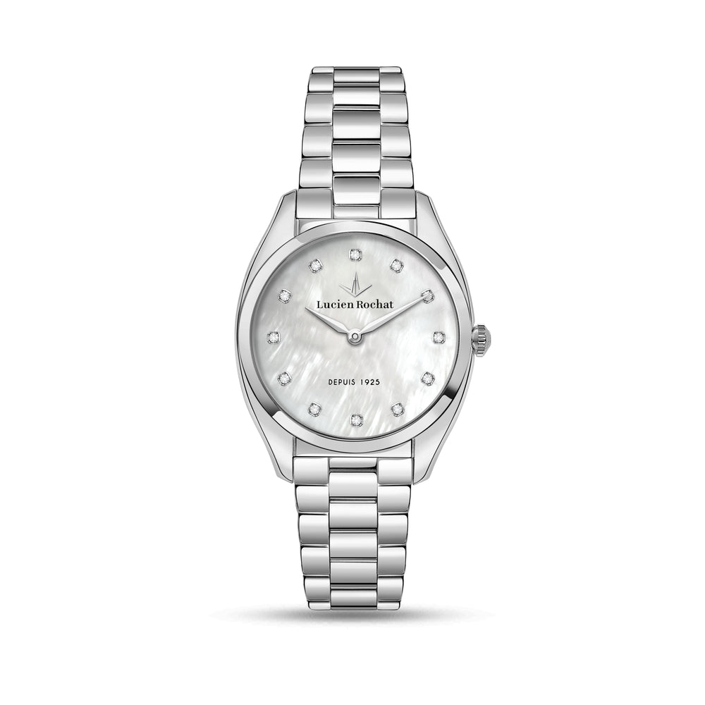 Orologio Donna LUCIEN ROCHAT della collezione MADEMOISELLE. Orologio con movimento MVT.GL24, funzione Solo tempo. 2H. Quadrante: 2 lancette indici di diamanti, finitura Acciaio. lucido, colore BIANCO. Tipo cinturino: Solid. Materiale cinturino: Bracciale in Metallo di colore Acciaio. Cassa in Vetro zaffiro di dimensioni 31. Chiusura: Fibbia DEPLOYANTE con pulsanti. Resistenza all'acqua: 3 ATM. Peso: 90 gr. Codice prodotto: R0453120501. Colore: ARGENTO. Materiali: Acciaio. Diamanti Naturali Selezionati H/I. Confezione: scatola originale LUCIEN ROCHAT. Garanzia: garanzia internazionale LUCIEN ROCHAT