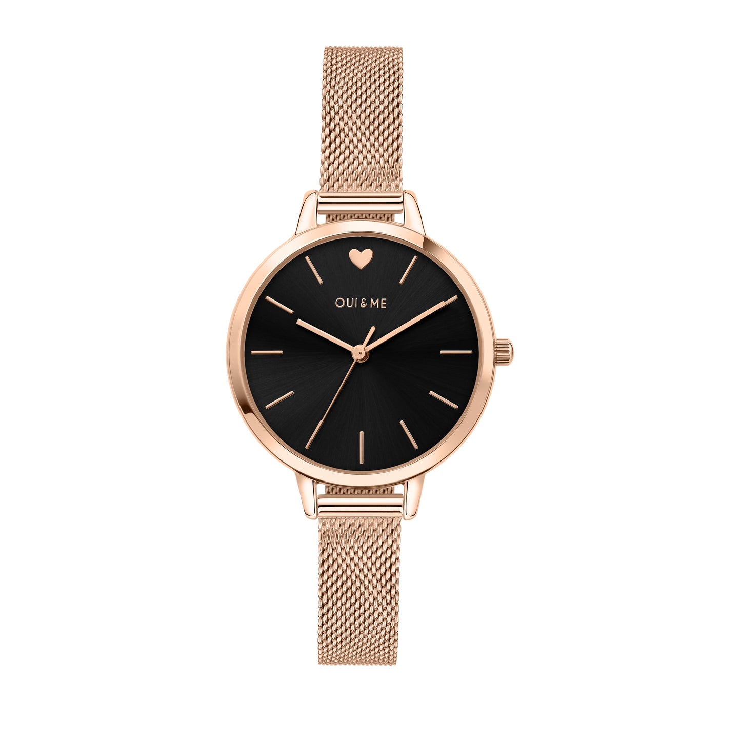 OROLOGIO DONNA OUI&ME AMOURETTE ME010002. Orologio Time only. 3H con movimento MVT. M2035. Materiali: steel. PVD rose gold. Quadrante in Mineral crystal di colore BLACK con 3 HANDS UPMR INDEXES, finitura in PVD ROSE GOLD. POLISHED. Dimensioni cassa: 32. Cinturino in METAL BAND di tipo Mesh band e di colore Rose Gold. Chiusura: CLIP AND HOOK. Confezione: scatola originale OUI&ME. Prodotto con garanzia internazionale OUI&ME.