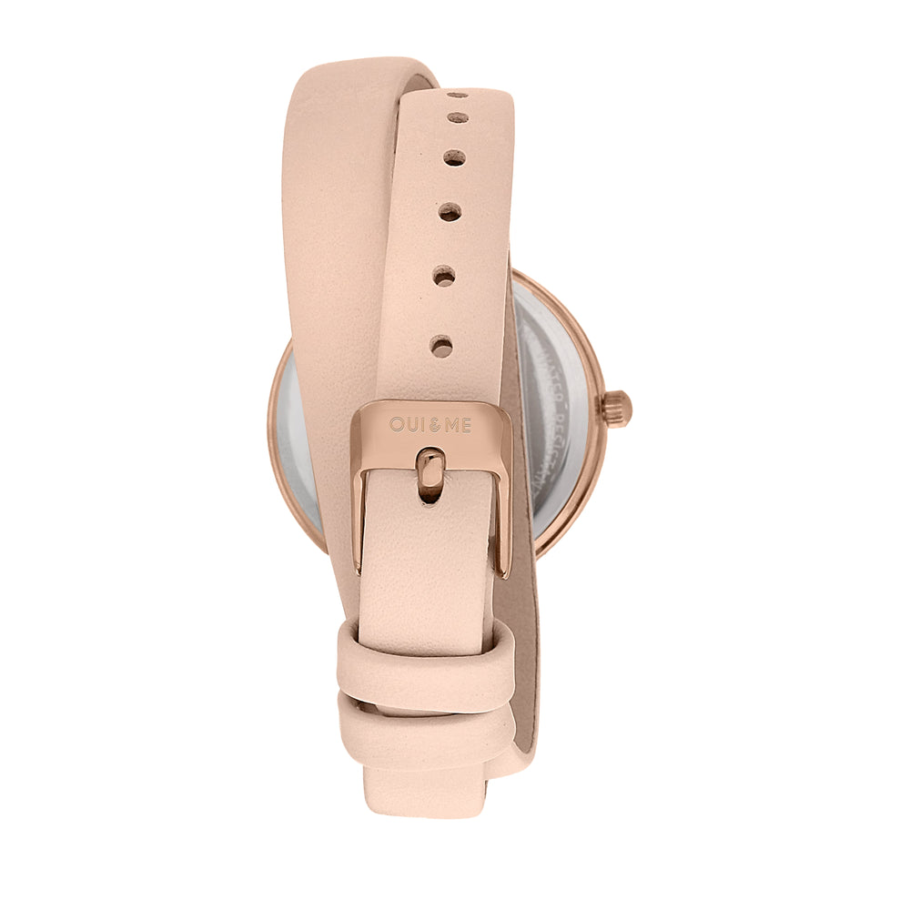 Orologio Donna OUI&ME della collezione AMOURETTE. Orologio con movimento MVT. M2035, funzione Solo tempo. 3H. Quadrante: 3 lancette indici UPMR, finitura Pvd oro rosa. Lucido, colore ORO ROSA. SUNRAY. Tipo cinturino: Semiribordato. Materiale cinturino: Bracciale in Pelle di colore Rosa. Cassa in Vetro minerale di dimensioni 32. Chiusura: Fibbia ARDIGLIONE. Resistenza all'acqua: 5 ATM. Peso: 40 gr. Codice prodotto: ME010092. Materiali: Acciaio. PVD Oro Rosa. Pelle naturale. Confezione: scatola originale OUI&ME. Garanzia: garanzia internazionale OUI&ME