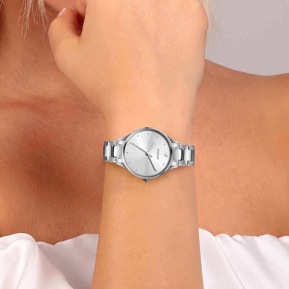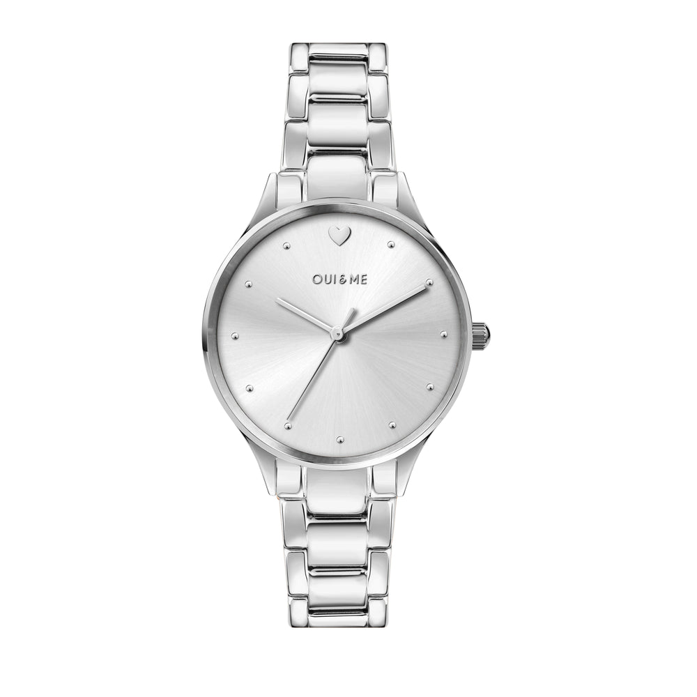 Orologio Donna OUI&ME della collezione BICHETTE. Orologio con movimento MVT TMI FE VJ21C1 3H, funzione Solo tempo. 3H. Quadrante: 3 lancette con punto indice applicato, finitura Acciaio. lucido, colore ARGENTO. Tipo cinturino: Cap-Folded. Materiale cinturino: Bracciale in Metallo di colore Acciaio. Cassa in Vetro minerale di dimensioni 32. Chiusura: Fibbia DEPLOYANTE con pulsanti. Resistenza all'acqua: 5 ATM. Peso: 73,4 gr. Codice prodotto: ME010157. Materiali: Acciaio. Confezione: scatola originale OUI&ME. Garanzia: garanzia internazionale OUI&ME