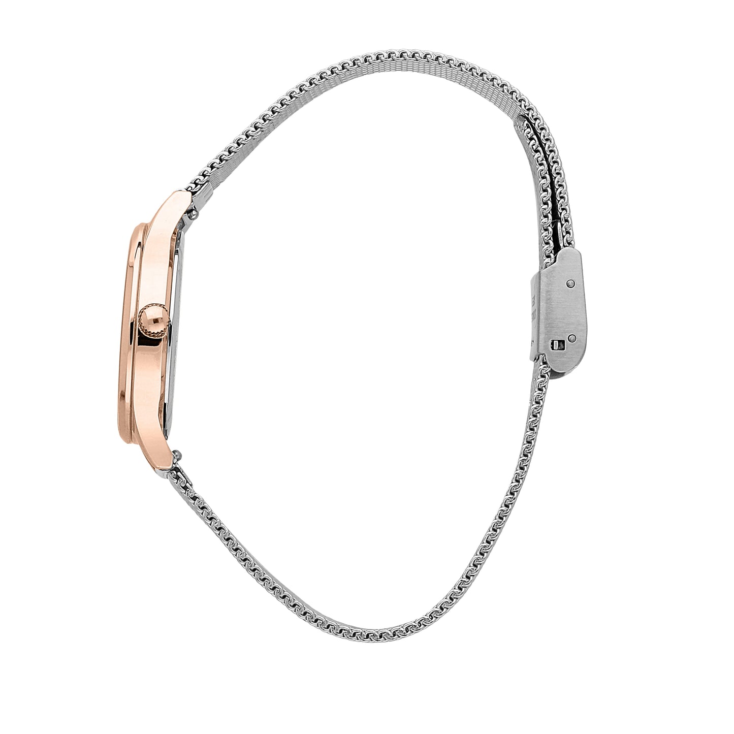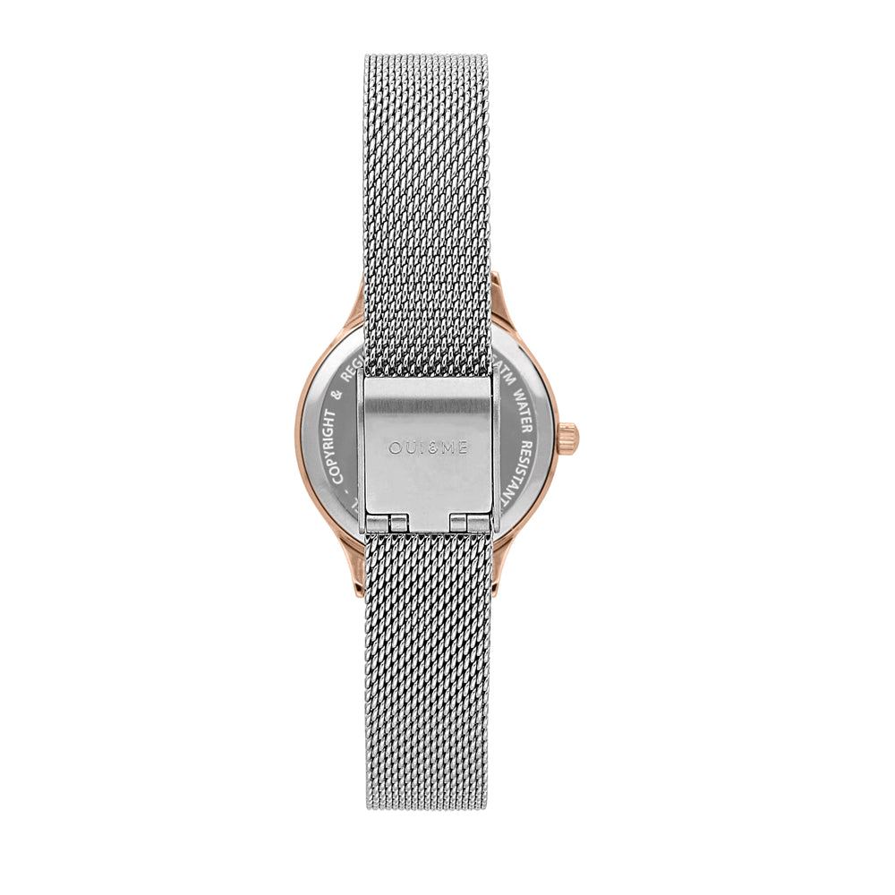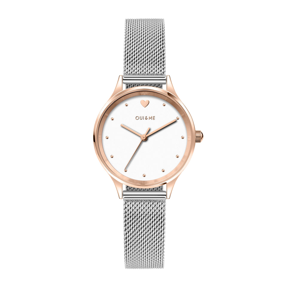 Orologio Donna OUI&ME della collezione BICHETTE. Orologio con movimento MVT VJ21, funzione Solo tempo. 3H. Quadrante: 3 lancette con punto indice applicato, finitura Acciaio. lucido, colore BIANCO. Tipo cinturino: Mesh Band. Materiale cinturino: Bracciale in Metallo di colore Acciaio. Cassa in Vetro minerale di dimensioni 28. Chiusura: Clip e gancio. Resistenza all'acqua: 5 ATM. Peso: 44,7 gr. Codice prodotto: ME010169. Colore: ORO ROSA. Materiali: PVD Oro Rosa. Finitura in acciaio. Confezione: scatola originale OUI&ME. Garanzia: garanzia internazionale OUI&ME