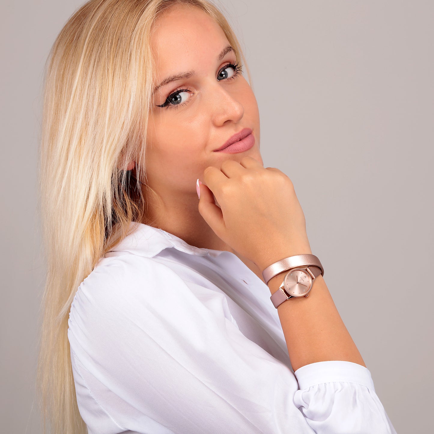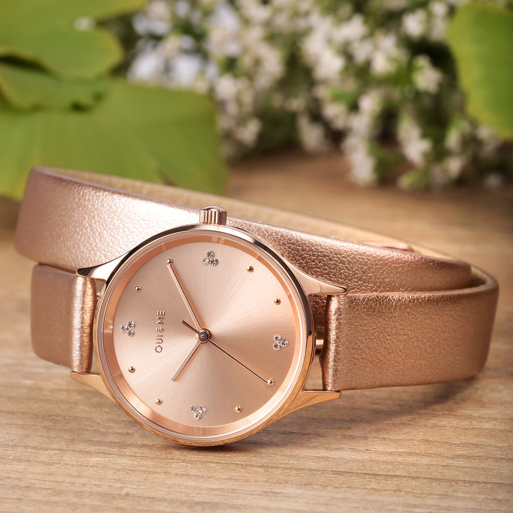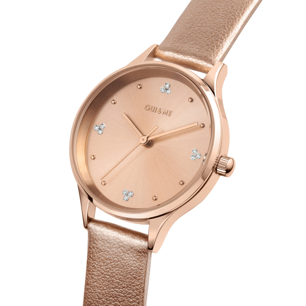 Orologio Donna OUI&ME della collezione BICHETTE. Orologio con movimento MVT VJ21, funzione Solo tempo. 3H. Quadrante: 3 lancette quadrante SUNRAY con indici punti e cri, finitura Acciaio. lucido, colore ORO ROSA. SUNRAY. Tipo cinturino: Semiribordato. Materiale cinturino: Bracciale in Pelle di colore Oro Rosa. Cassa in Vetro minerale di dimensioni 28. Chiusura: Fibbia ARDIGLIONE. Resistenza all'acqua: 5 ATM. Peso: 33,5 gr. Codice prodotto: ME010242. Materiali: Acciaio. PVD Oro Rosa. Pelle naturale. Confezione: scatola originale OUI&ME. Garanzia: garanzia internazionale OUI&ME