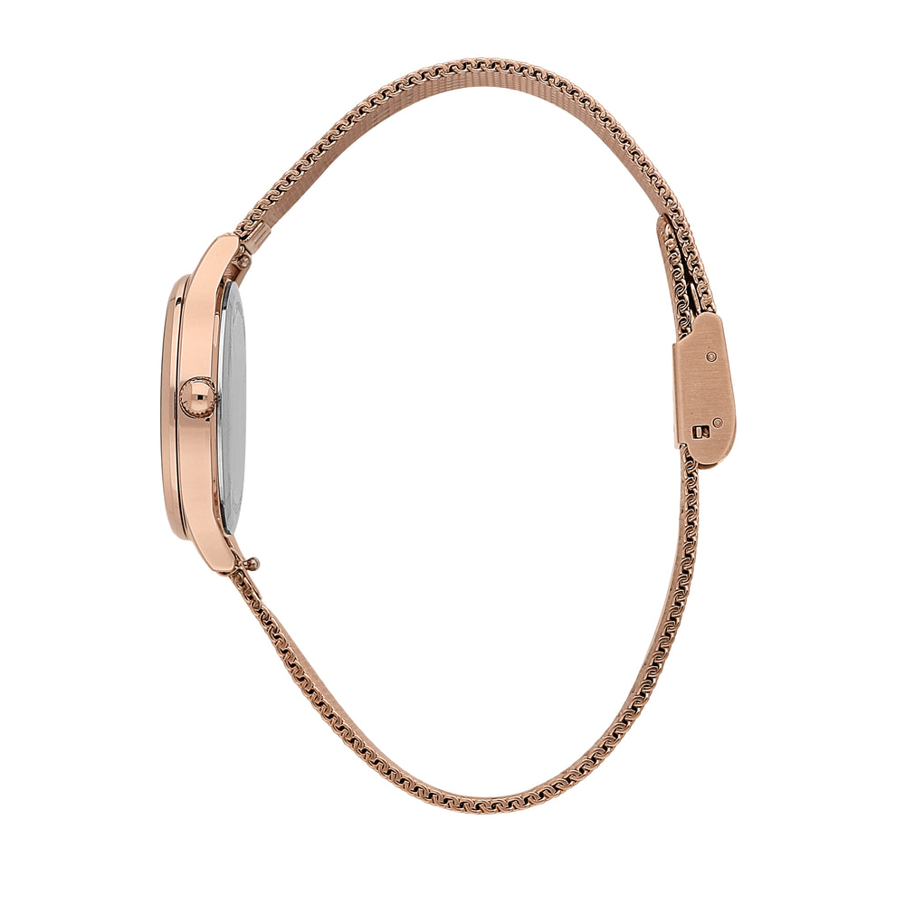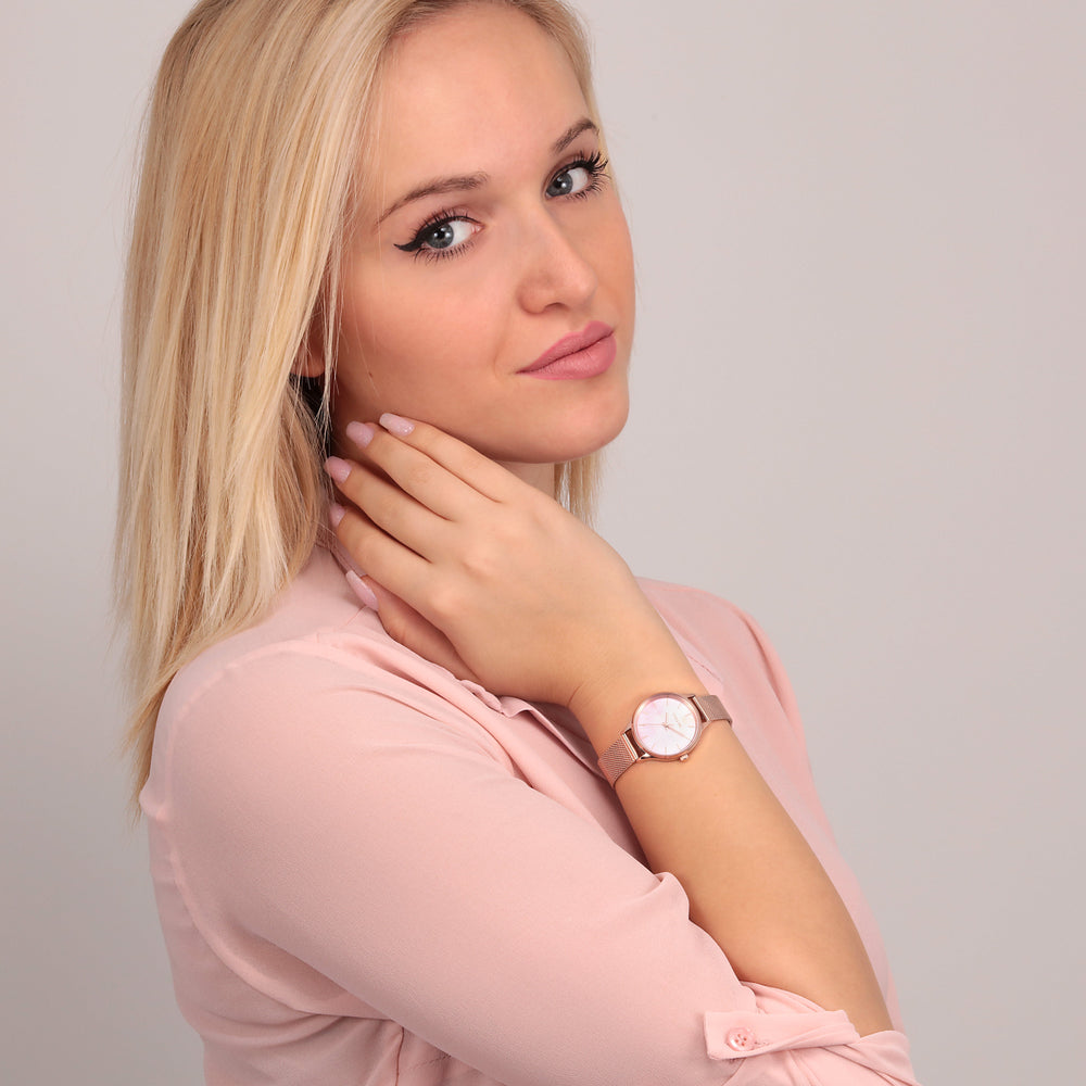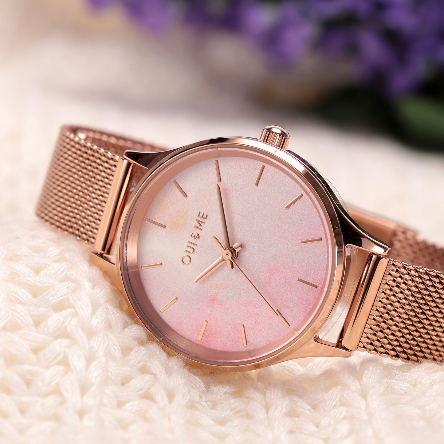 Orologio Donna OUI&ME della collezione BICHETTE. Orologio con movimento MVT VJ21, funzione Solo tempo. 3H. Quadrante: 3 lancette UPMR a ore 1-12, finitura Pvd oro rosa. Lucido, colore ROSA. BRILLANTE. Tipo cinturino: Mesh Band. Materiale cinturino: Bracciale in Metallo di colore Oro Rosa. Cassa in Vetro minerale di dimensioni 28. Chiusura: Clip e gancio. Resistenza all'acqua: 5 ATM. Peso: 44,7 gr. Codice prodotto: ME010272. Materiali: Acciaio. PVD Oro rosa. Confezione: scatola originale OUI&ME. Garanzia: garanzia internazionale OUI&ME