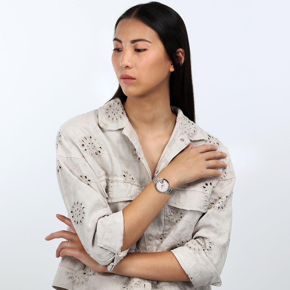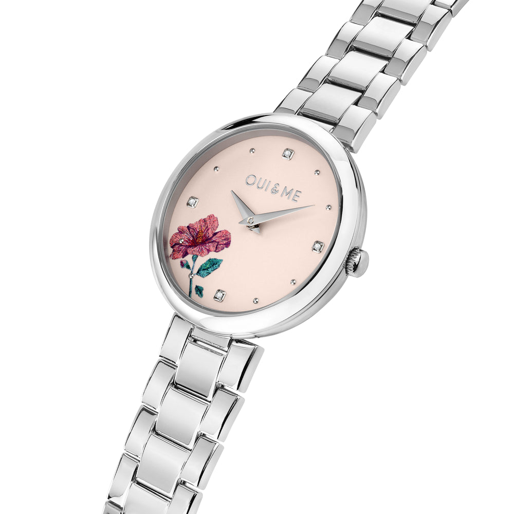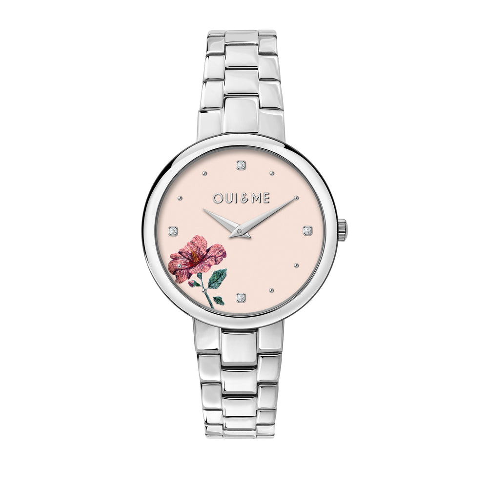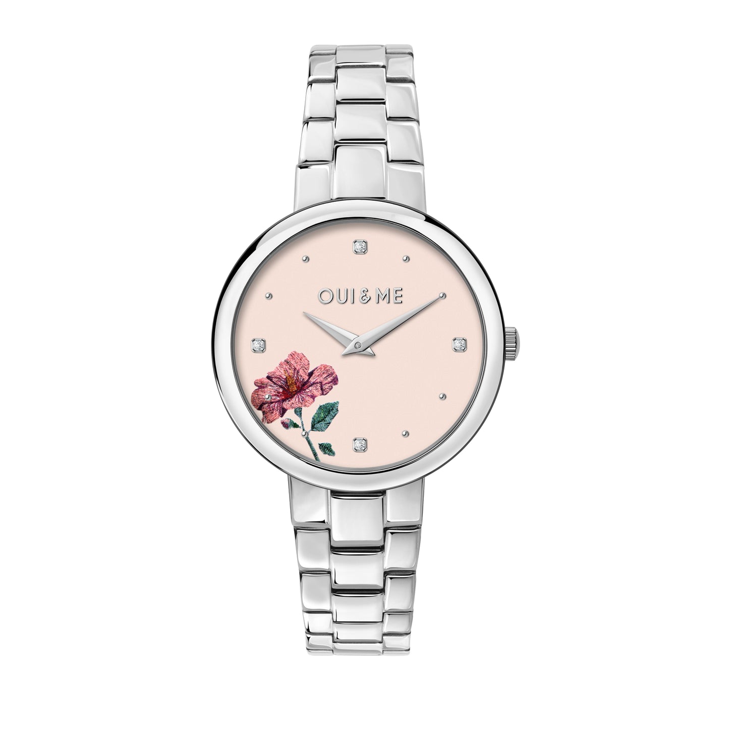 Orologio Donna OUI&ME della collezione CHÉRIE. Orologio con movimento MVT. MIYOTA 2025 2/SFERE, funzione Solo tempo. 2H. Quadrante: 2 lancette indici/stampato 3D, finitura Acciaio. lucido, colore ROSA. BRILLANTE. Tipo cinturino: Mesh Band. Materiale cinturino: Bracciale in Metallo di colore Acciaio. Cassa in Vetro minerale di dimensioni 34. Chiusura: Fibbia DEPLOYANTE con pulsanti. Resistenza all'acqua: 5 ATM. Peso: 82,5 gr. Codice prodotto: ME010325. Colore: ARGENTO. Materiali: Acciaio riciclato. Confezione: scatola originale OUI&ME. Garanzia: garanzia internazionale OUI&ME