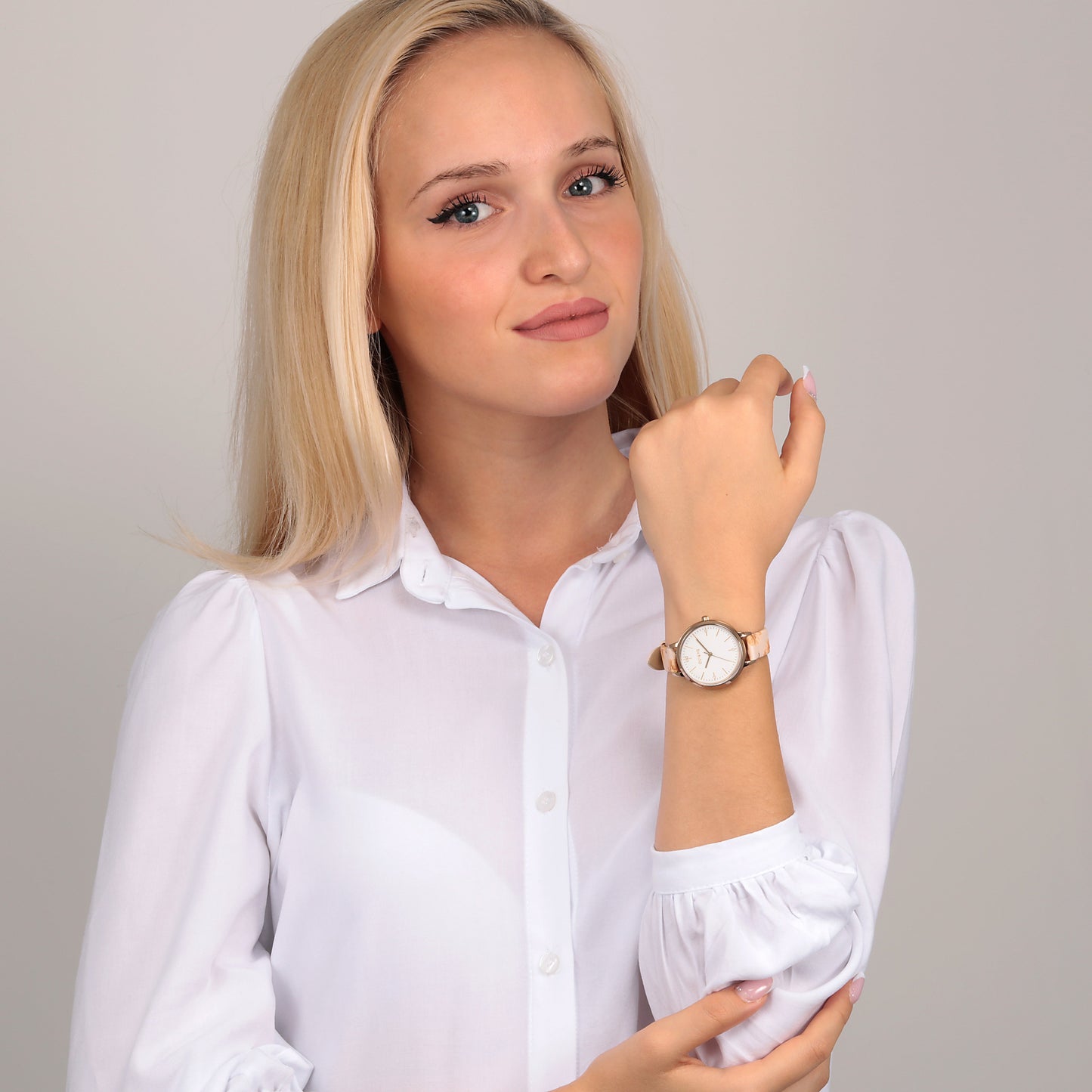 Orologio Donna OUI&ME della collezione FLEURETTE. Orologio con movimento MVT. M2035, funzione Solo tempo. 3H. Quadrante: 3 lancette UPMR indici + indici cristalli ore 3/6/, finitura Acciaio. lucido, colore BIANCO. Tipo cinturino: Semiribordato. Materiale cinturino: Bracciale in Pelle di colore Rosa. Cassa in Vetro minerale di dimensioni 34. Chiusura: Fibbia ARDIGLIONE. Resistenza all'acqua: 5 ATM. Peso: 40 gr. Codice prodotto: ME010305. Materiali: Acciaio. Pelle reciclata. Confezione: scatola originale OUI&ME. Garanzia: garanzia internazionale OUI&ME