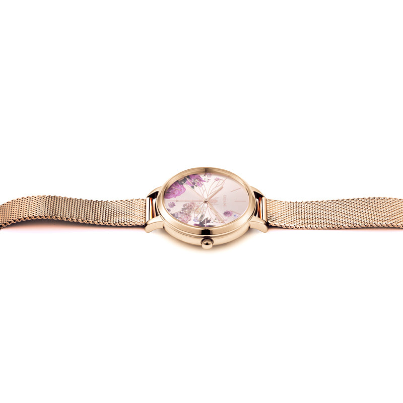 Orologio Donna OUI&ME della collezione FLEURETTE. Orologio con movimento MVT. M2035, funzione Solo tempo. 3H. Quadrante: 3 lancette indici/stampato 3D, finitura Pvd oro rosa. Lucido, colore ORO ROSA. SUNRAY. Tipo cinturino: Mesh Band. Materiale cinturino: Bracciale in Metallo di colore Oro Rosa. Cassa in Vetro minerale di dimensioni 34. Chiusura: Clip e gancio. Resistenza all'acqua: 5 ATM. Peso: 50 gr. Codice prodotto: ME010342. Colore: ORO ROSA. Materiali: Acciaio riciclato. PVD oro rosa. Confezione: scatola originale OUI&ME. Garanzia: garanzia internazionale OUI&ME