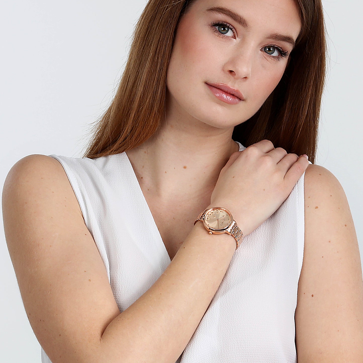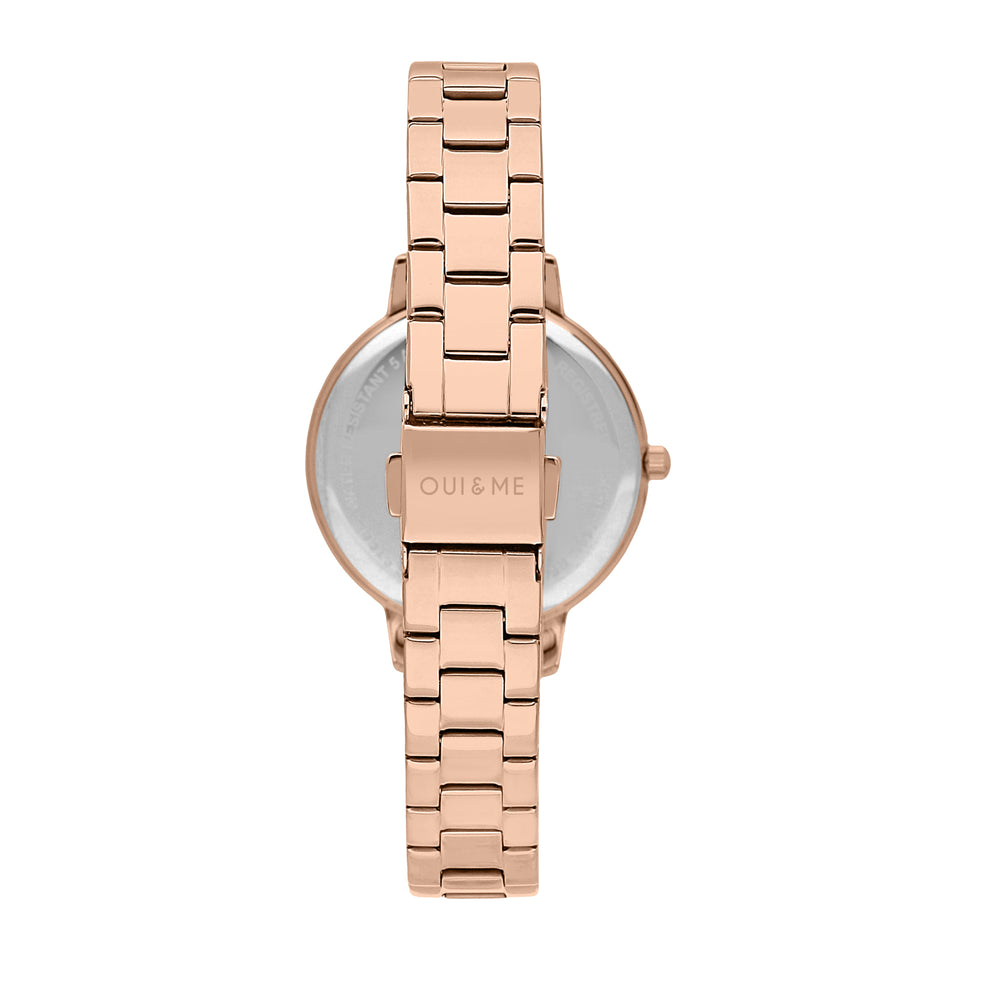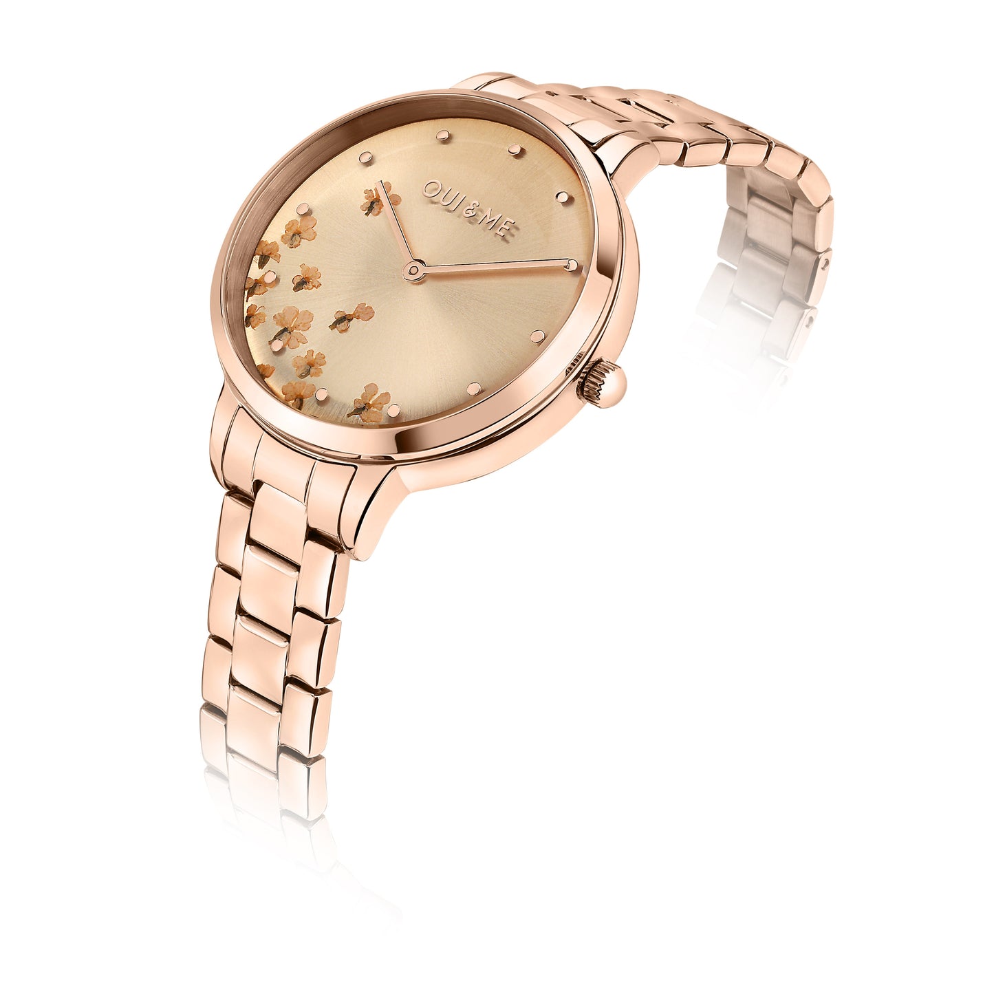 Orologio Donna OUI&ME della collezione FLEURETTE. Orologio con movimento MVT MIYOTA 2026, funzione Solo tempo. 2H. Quadrante: 2 lancette con UPMR e fiore vero smaltato, finitura Acciaio. lucido, colore ORO ROSA. SUNRAY. Tipo cinturino: Cap-Folded. Materiale cinturino: Bracciale in Metallo di colore Oro Rosa. Cassa in Vetro minerale di dimensioni 34. Chiusura: Fibbia DEPLOYANTE con pulsanti. Resistenza all'acqua: 5 ATM. Peso: 67,89 gr. Codice prodotto: ME010370. Colore: ORO ROSA. Materiali: Acciaio riciclato. PVD oro rosa. Confezione: scatola originale OUI&ME. Garanzia: garanzia internazionale OUI&ME