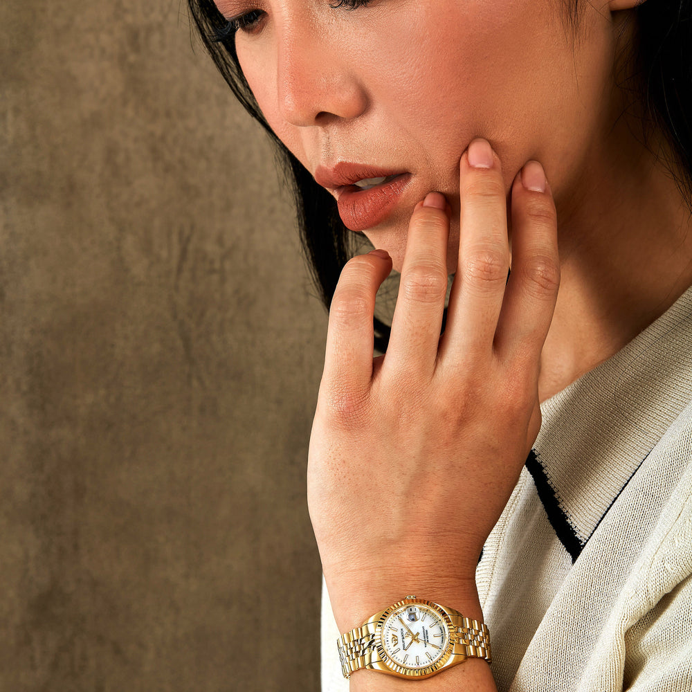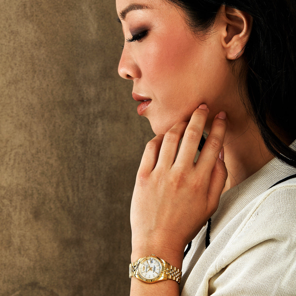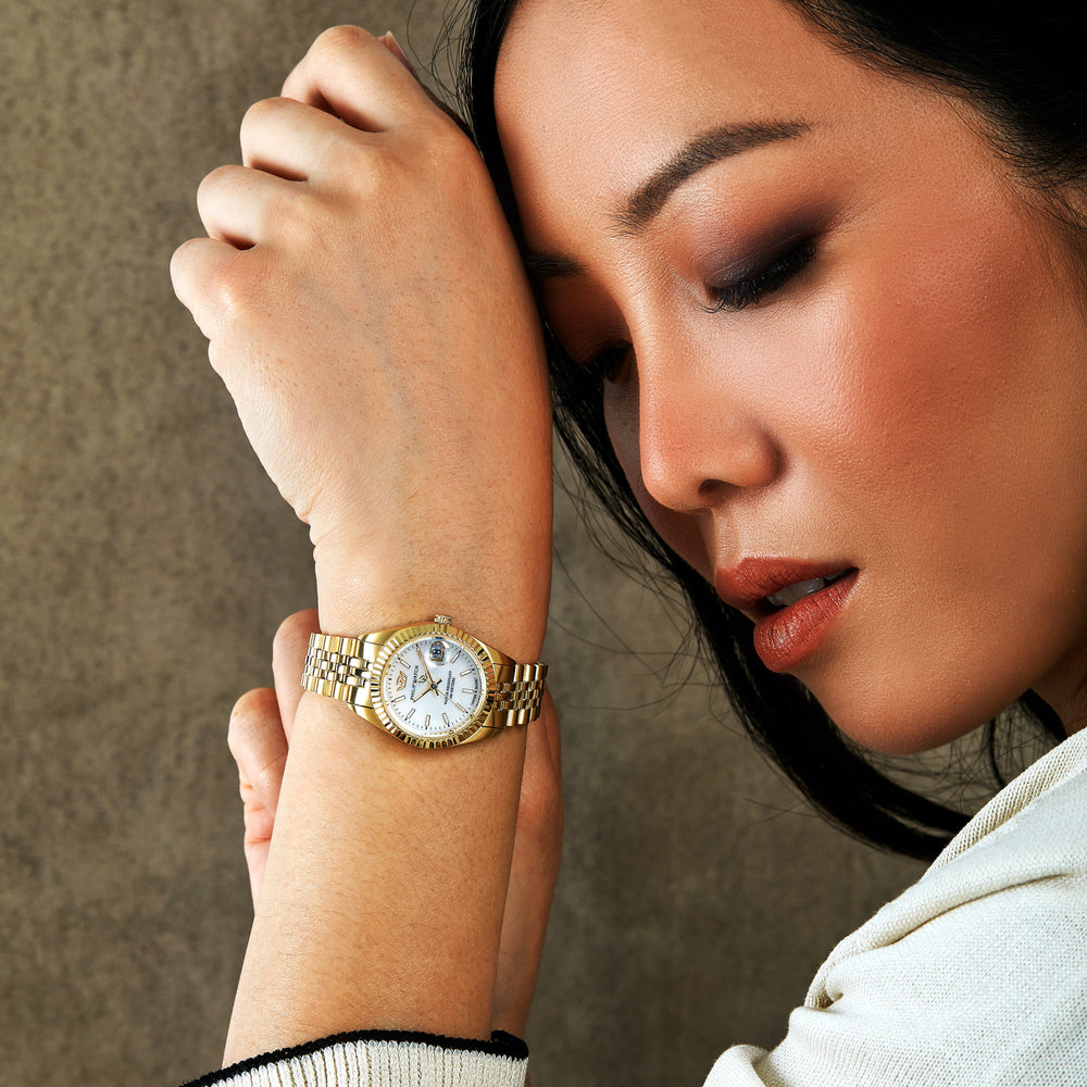 Orologio Donna PHILIP WATCH della collezione CARIBE URBAN. Orologio con movimento MVT. F04.115, funzione tempo e data. Quadrante: 3 Lancette indici applicati con/datario a ore 3, finitura Lucido e satinato, colore BIANCO. Tipo cinturino: Solid. Materiale cinturino: Bracciale in Metallo di colore Oro. Cassa in Vetro zaffiro. trattamento antiriflesso di dimensioni 28. Chiusura: Fibbia FARFALLA con pulsanti. Resistenza all'acqua: 10 ATM. Peso: 76,14 gr. Codice prodotto: R8253597650. Colore: ORO GIALLO. Materiali: Acciaio. Confezione: scatola originale PHILIP WATCH. Garanzia: garanzia internazionale PHILIP WATCH
